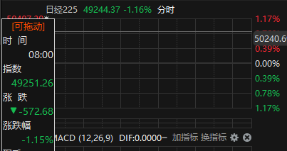 上证报中国证券网讯11月21日,日韩股市开盘齐跌。日经225指数跌1.15%,报49251.26点;韩国综合指数跌2.40%,报3908.70点。