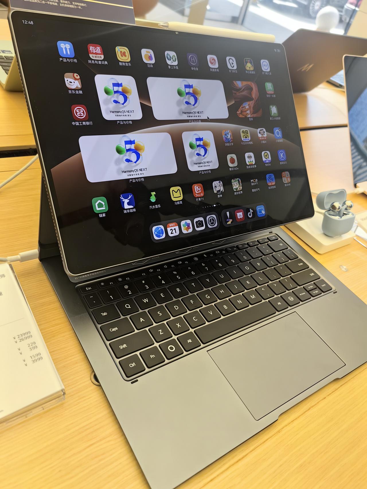华为即将发布的二合一电脑,已经可以到线下店体验实机了。 平板和电脑双系统,电脑系