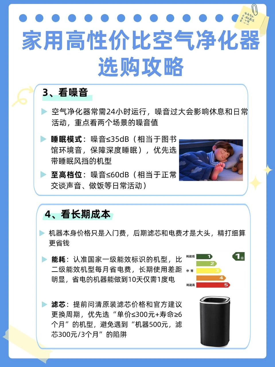 💰静音省电:睡眠模式31dB,滤网年成本 269 元,一级能效,10天仅需1度电,长期用无压力