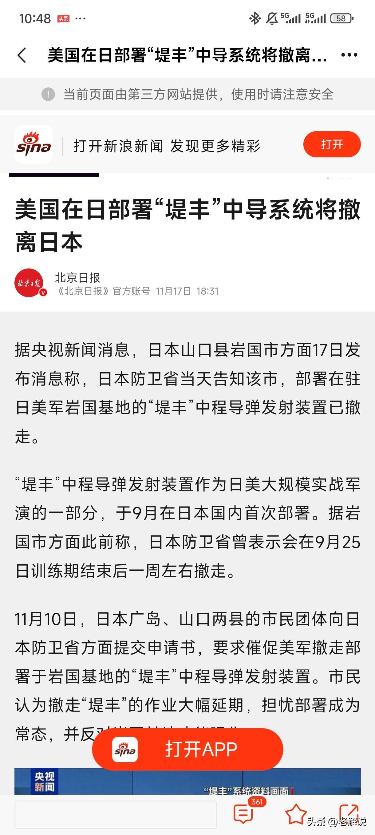 美国听懂中方警告,紧急从日本撤走中导系统!据央视报道,当地时间17日,日本山口县
