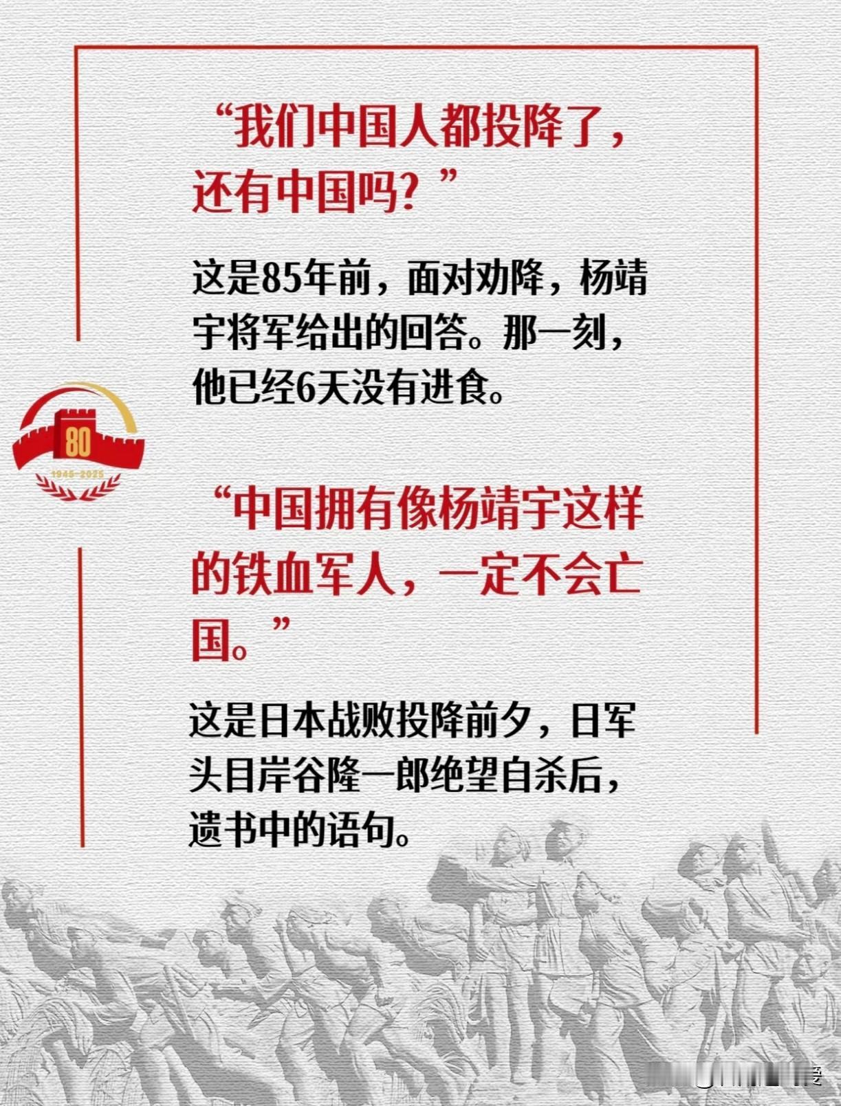 《宁死不屈的杨靖宇》杨靖宇率领的抗联部队在濛江县与日军遭遇。 1940年2月,杨靖宇率抗联部队在濛江县与日军遭遇,7万大军围困此地。为了逃脱,他决定分兵,自己率部队隐蔽渗透,寻找补给。 可内部叛徒出卖了部队隐蔽位置,部队遭到围攻。到2月7日除夕,杨靖宇身边只剩7人,他把伤员托付给警卫员,就和剩下的几名战士继续坚持斗争。 为了掩护部队和伤员安全隐蔽,杨靖宇和警卫员分开,自己与朱文范、聂东华一起留在原地,主动吸引敌人火力。2月18日,朱文范、聂东华壮烈牺牲,杨靖宇则孤身面对日军围剿。 他忍饥挨冻,宁死不屈,誓与敌人斗争到底,不投降,不屈服。2月23日,杨靖宇在与敌军的交战中受了重伤。在他饥饿扛不住的时候,咬破手指,把棉絮、树皮咽下,来充饥。 在关键时刻,遇到了打柴人赵延喜,他把身上仅有钞票全掏出来为了跟他换点粮食和棉鞋,可换来的是一句“投降吧”,杨靖宇并没有妥协,他用坚定的语气说:我是中国人,不会向外国人投降!最可恨的是,他还向敌人告了密,最后还是死在了叛徒张奚若的枪下,那年他才35岁。 杨靖宇的牺牲是宁死不屈的选择,是誓死捍卫国家尊严的选择,是不投降选择的永远。体现了一个东方大国人的民族气节。 来,一起来为我们的英雄致敬!