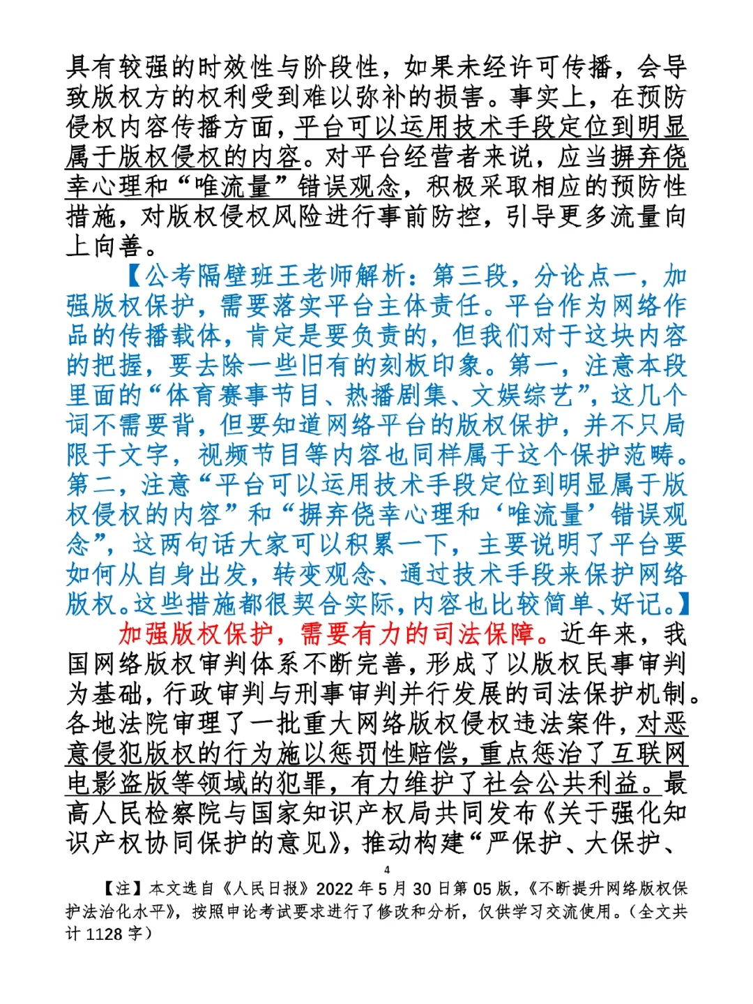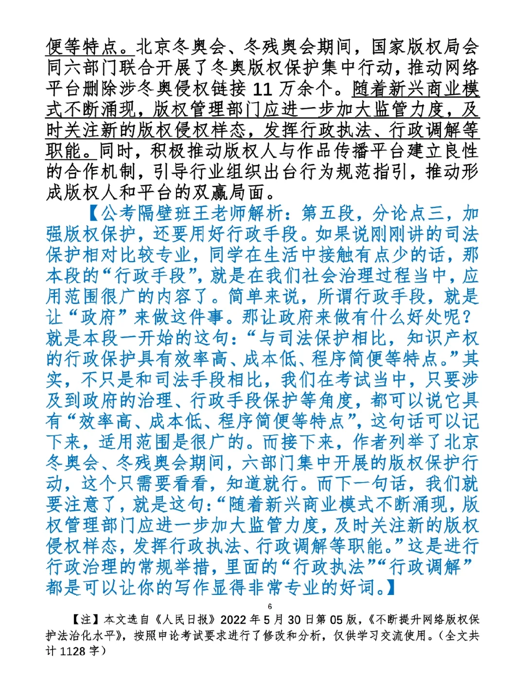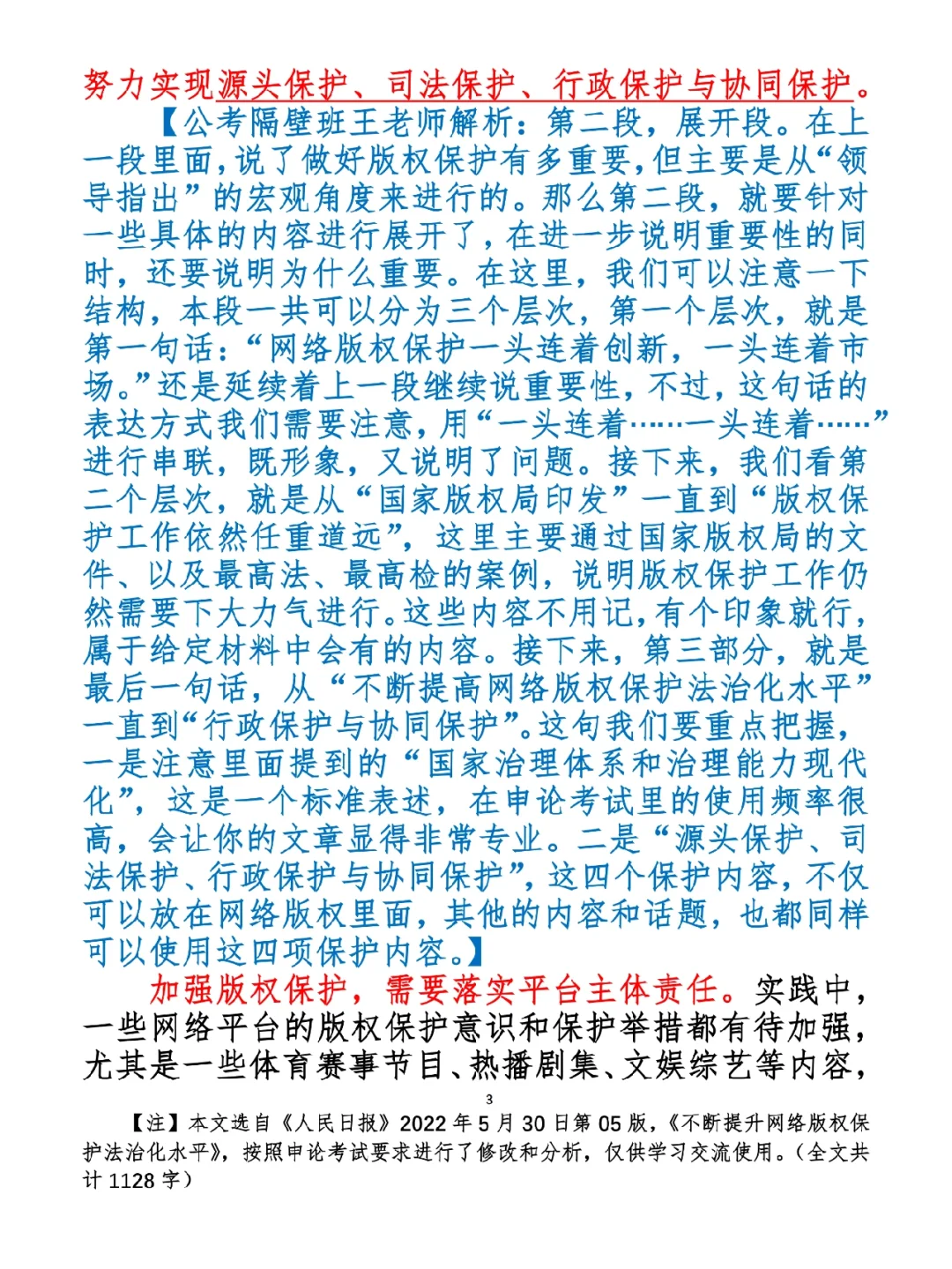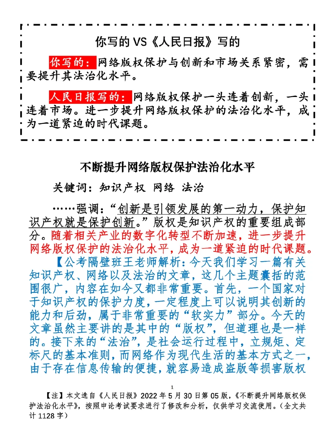 1.如何抄写:每天的抄写文章以图片形式发在“公考隔壁班王老师”账号,红色字是重点句和结构句,黑色字是正文,蓝色字是解析,大家抄写时不必抄蓝色字。建议先通读全文(包括蓝色解析部分),做到心中有数再开始抄写,效果会更好。 2.关于文章:抄写文章来源于人民日报,但每篇文章我都根据申论考试要求进行了修改,主要集中在四个方面:一是重写或修改开头、结尾;二是统一段首句句式结构;三是调整段落字数,使文章结构更均衡;四是简化复杂长难句,使之更具可模仿性。每篇文章修改幅度不同,无论修改多少,都是基于申论考试要求,毫无对人民日报文章品评之意。(此处致敬人民日报) 3.关于解析:我会在文章每段后面加一段蓝色字的解析,是我自己在抄写时的感悟,篇幅时间有限,不能面面俱到,但求重点突出。如果你有其他感悟,也希望能在评论里分享,我们相互学习、共同进步。 ⭐️ ⭐️ ⭐️ ⭐️ ⭐️ ⭐️ 这里是公考隔壁班王老师独创的“每天半小时・申论80分”抄写团,欢迎加入我们!