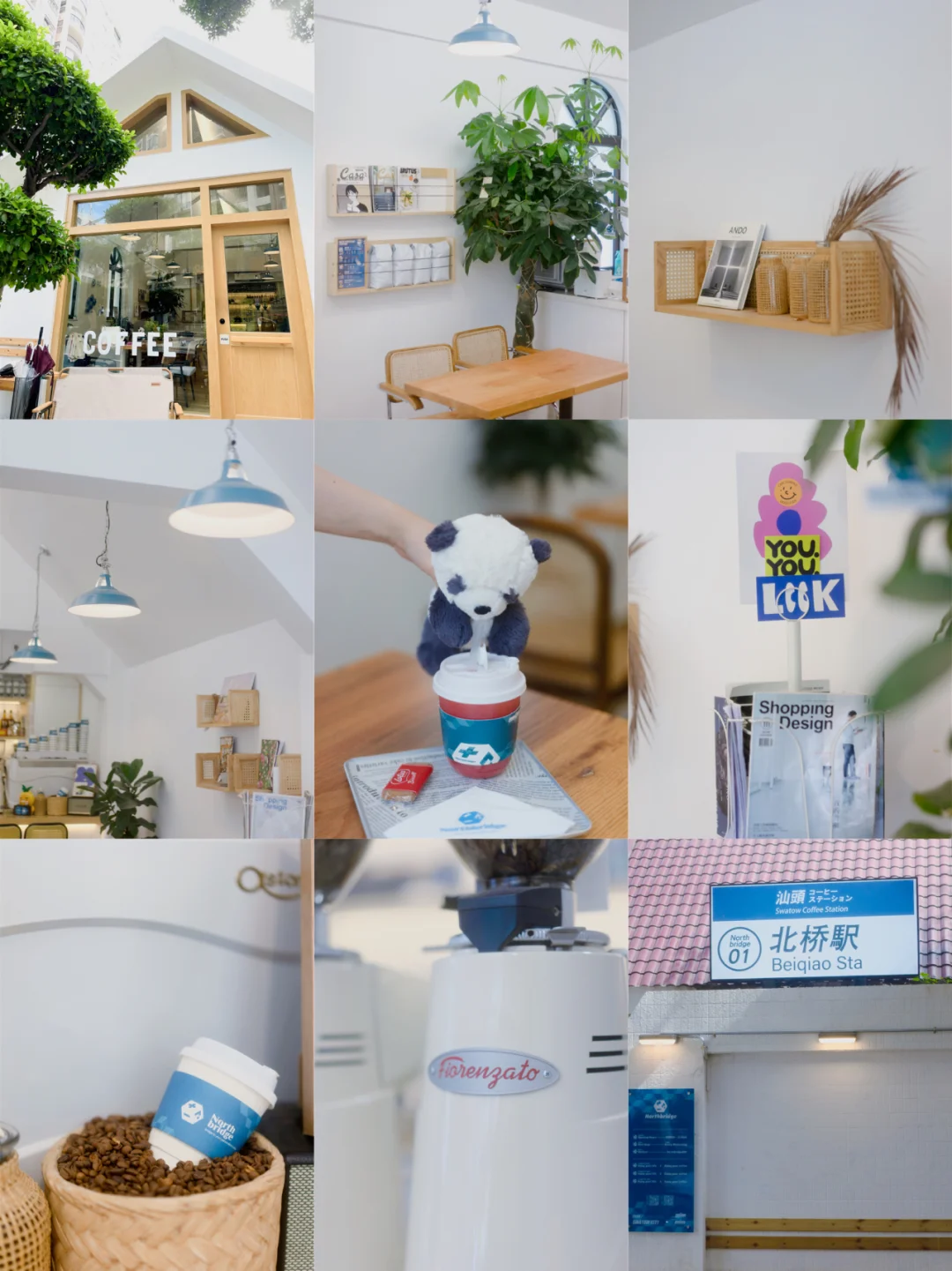 白色独栋的咖啡屋很日系的感觉 店内简约的设计也让人很舒心