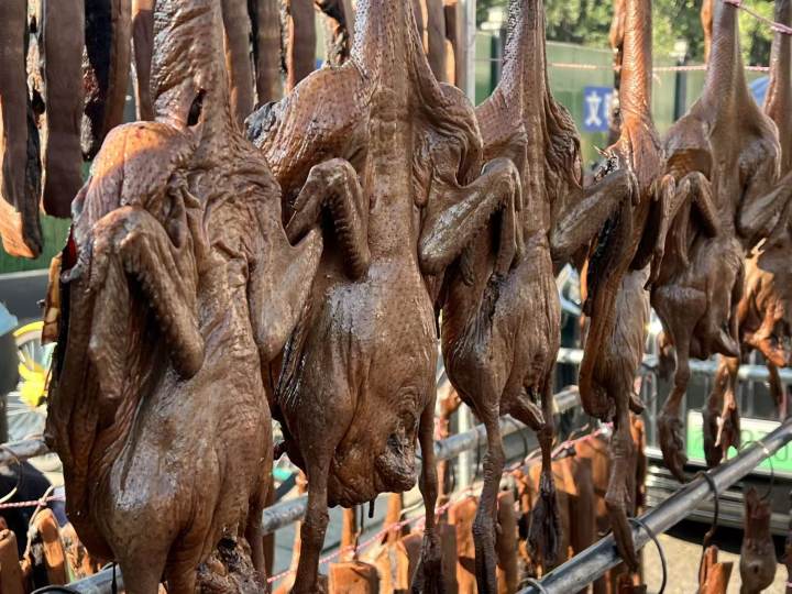 眼下,制作冬腌菜的长梗白菜还未集体出街,不过太庙广场旁边的察院前巷,已经飘起了酱香味,今年的酱鸭儿开晒了。