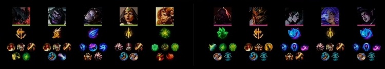 红色方WE金(WEG):宸宇赛恩、Lele皇子、xiye(C)慧、瞳夕芸阿娜、Cryin莫甘娜