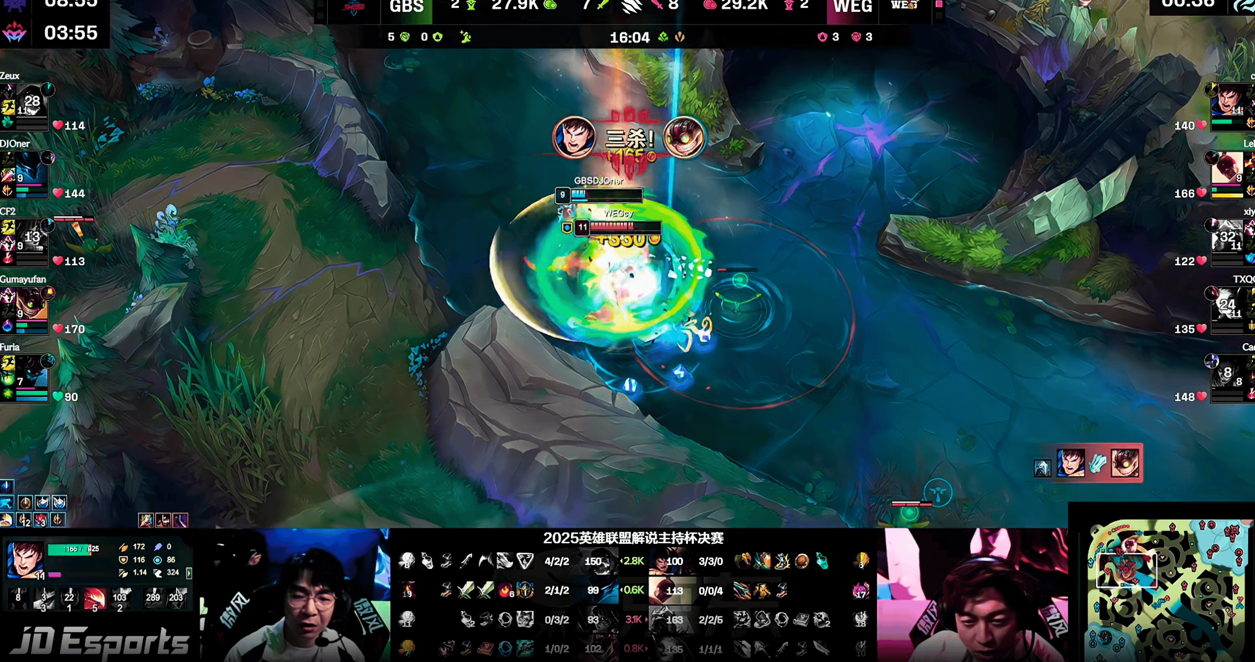 19分钟:WEG入侵野区连续击杀多人,约里克闪现强行换掉塞拉斯但WEG打出1换4