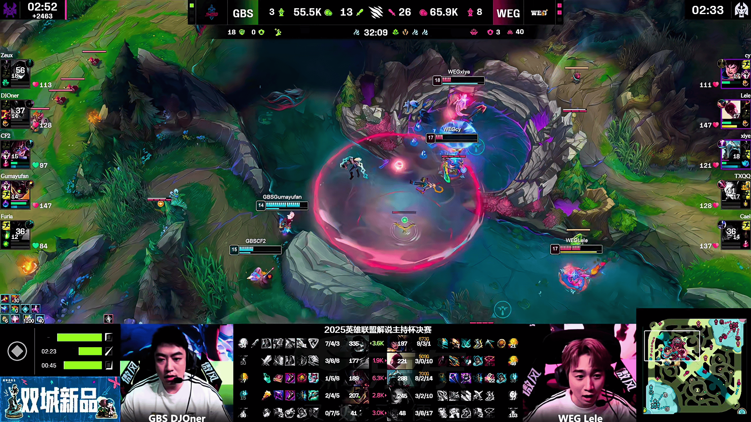 32分钟:GBS梦魇关灯进场拼死一搏,但WEG强势打出2换3顺利控下大龙