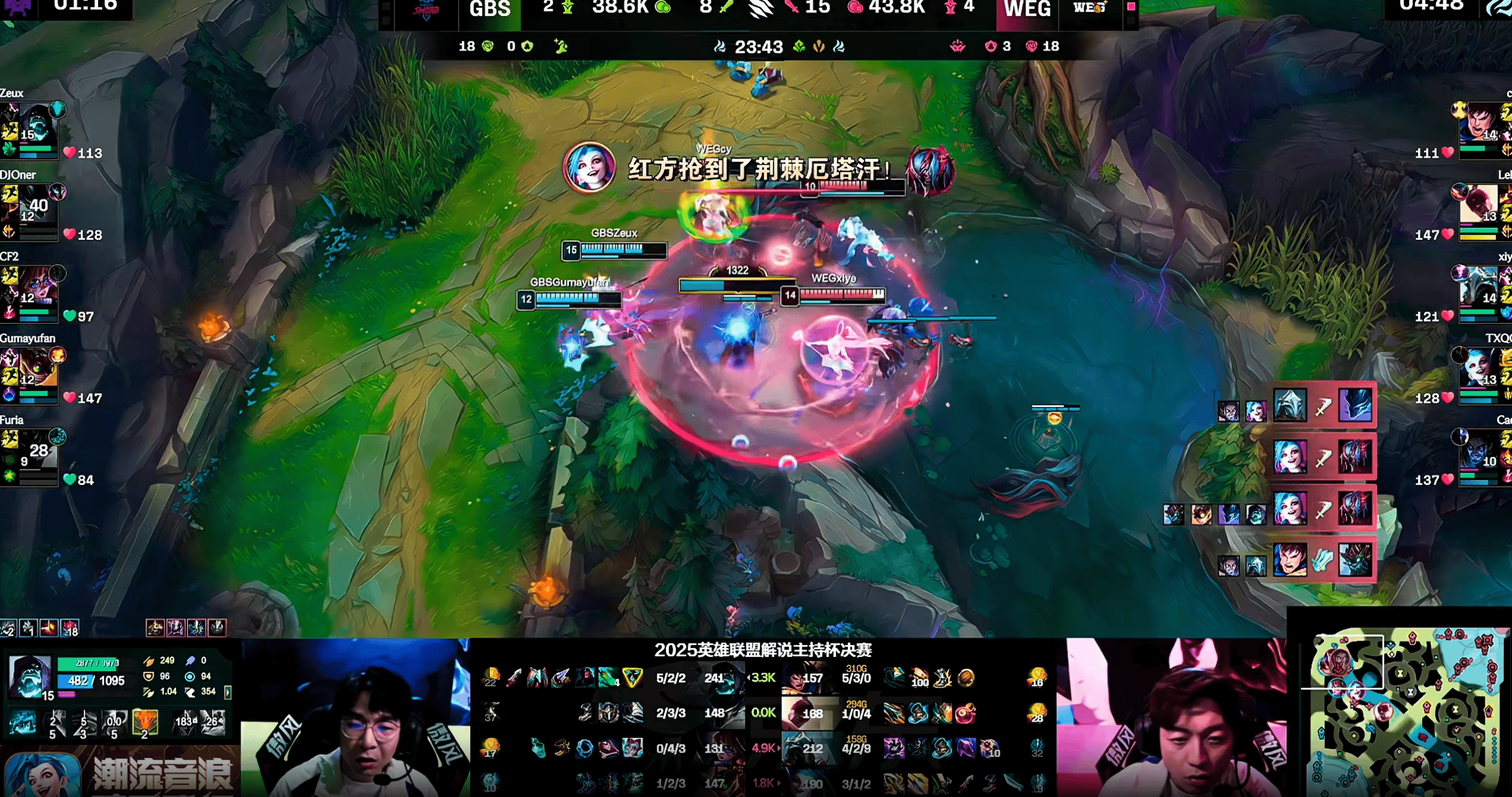 23分钟:金克丝大招抢到厄塔汗,后续团战WEG摧枯拉朽取胜