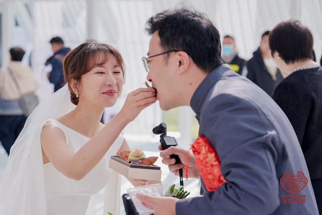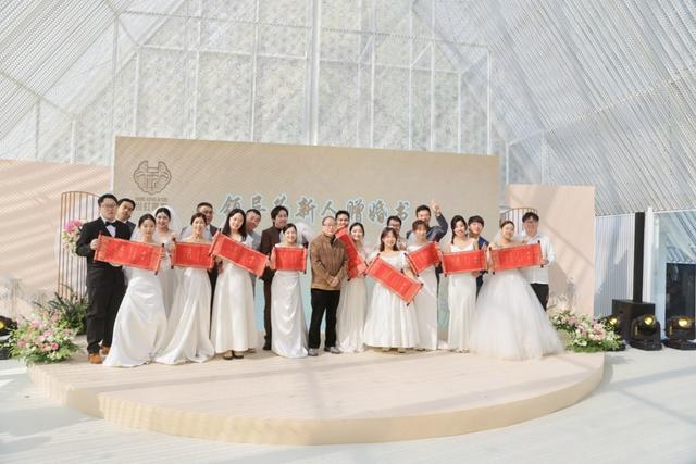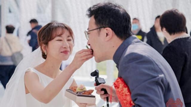 去年今日是王亦可和赵雨稼在甜爱婚姻登记中心领证的日子。之前,王亦可在公众号看到招募集体婚礼的信息,马上报了名,并主动提出把在自己婚礼上演唱的《爱一点》带到今天的现场。王亦可说,由于这次招募的是过去两年内在此领证的夫妻,这场集体婚礼带给她最大的触动,是可以看到年轻爱侣们的不同状态和相处模式——有人刚踏入婚姻殿堂,有人已带着孩子前来。这些婚姻的不同阶段,也让赵雨稼感慨“被婚姻改变了”——作为“i人(内向的人)”,如果时光倒退到一年多前,他完全无法想象自己会在那么多陌生人跟前唱歌。但磨合、尝试,恰是婚姻赋予他的成长,再次举办婚礼,也让他重温结婚时的初心,“继续相信自己和另一半,继续相信爱情”。
