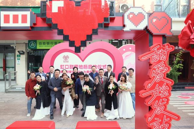 虹口甜蜜产业发展联合会为参加集体婚礼的新人提供婚纱、甜点、鲜花等支持。