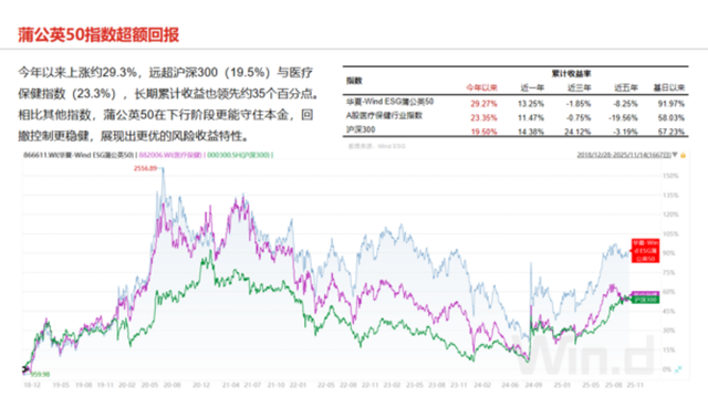 关于市场表现,她指出蒲公英指数展现出卓越的收益能力与风险控制水平:“蒲公英50指数年内上涨约29%,长期累计收益率领先沪深300及医疗行业指数约35个百分点,年化回报约10%。”