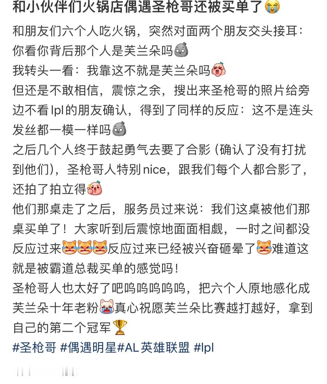 🍠网友火锅店偶遇圣枪哥还被买单了这种事情发朋友圈就好了呀喂cr.shysusj