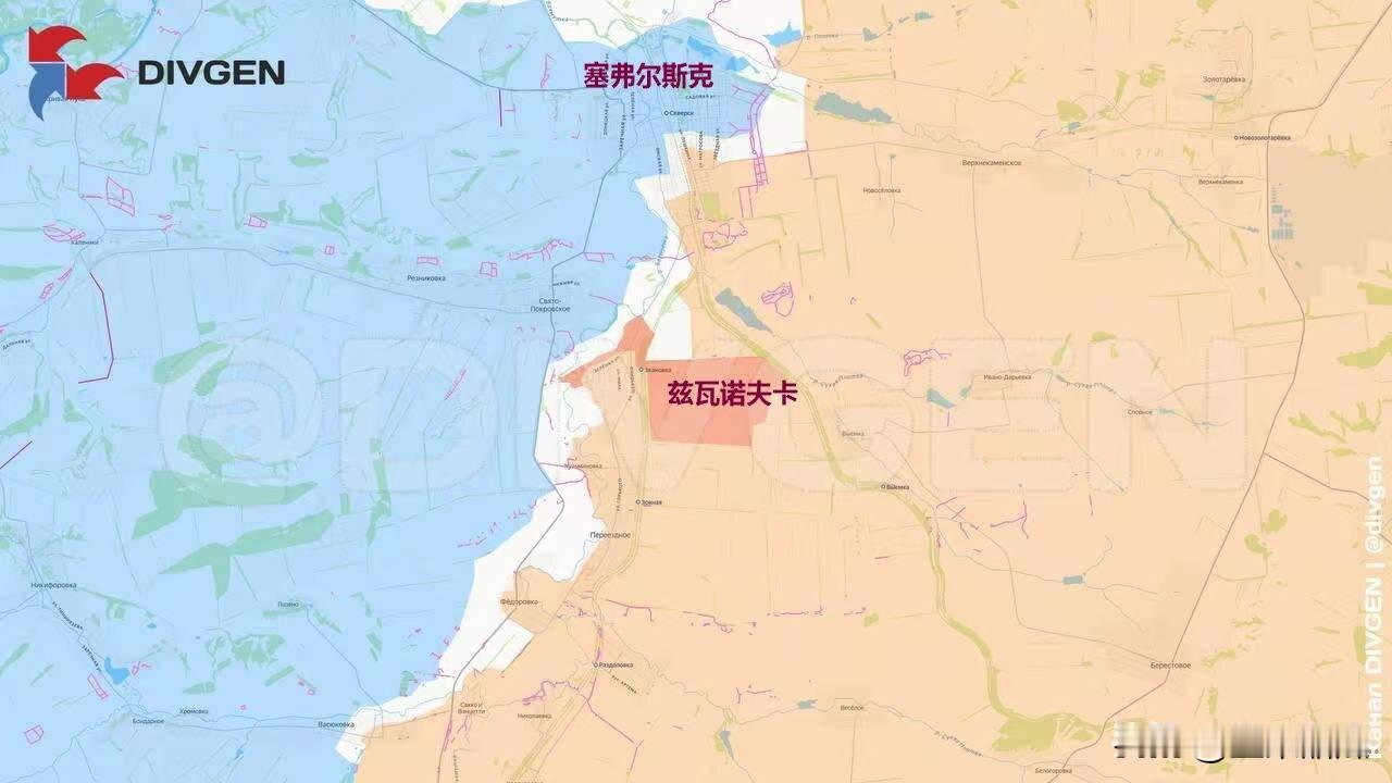 俄罗斯国防部长别洛乌索夫亲自发声,庆贺南部集群第88机动步枪旅突击队拿下兹瓦尼夫卡。 值得国防部长发声,这个村来头不小,这里位于塞弗尔斯克南部,拿下这里沿着公路北上,就是塞弗尔斯克南郊。 考虑到塞弗尔斯克北部已被包围,这个城市境遇跟胡里艾伯勒基本一样。面临被三面包围