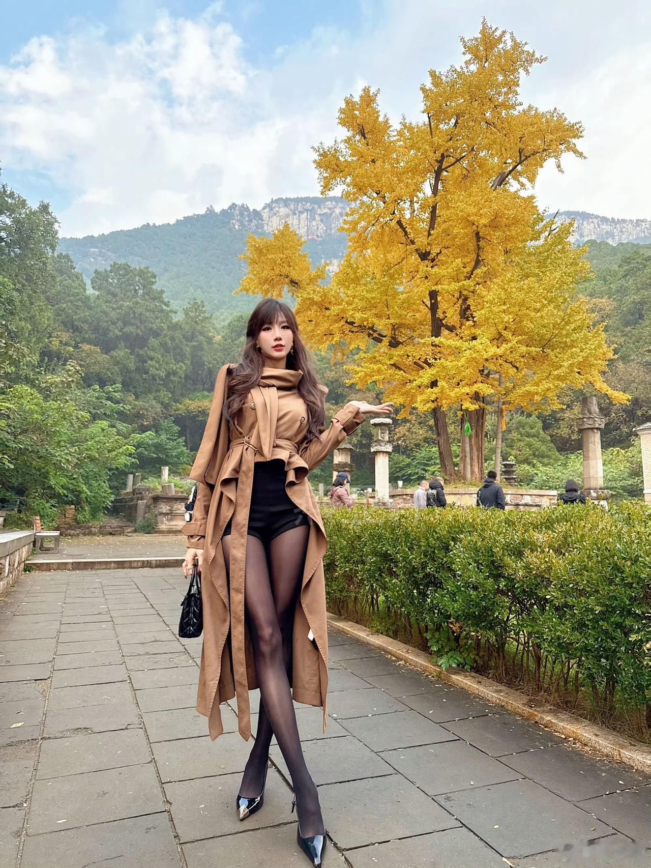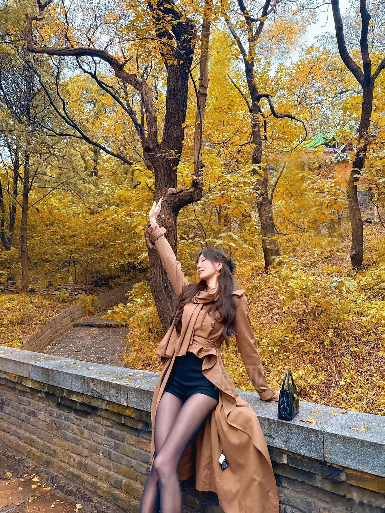 秋叶黄时,美人倚树。