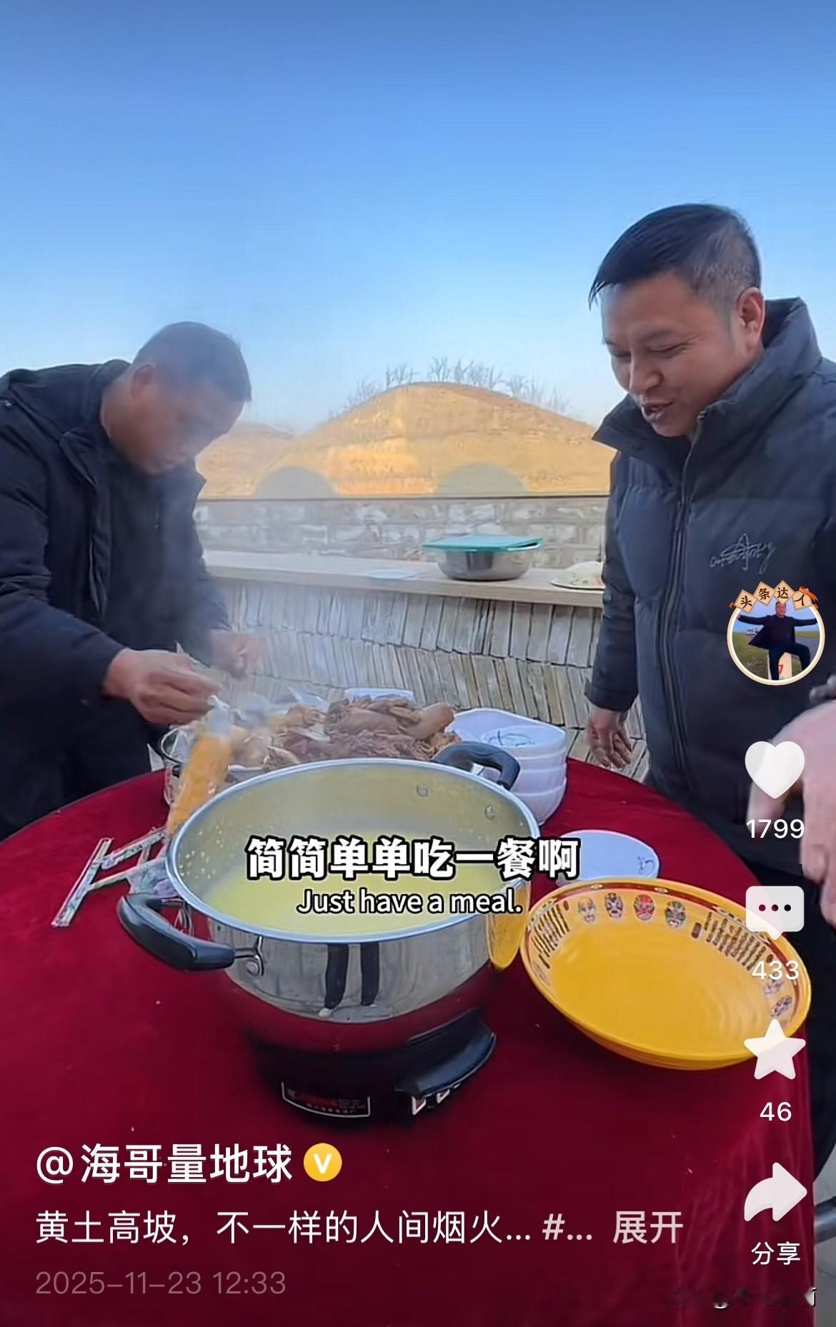 海哥跑去黄土高坡当民宿老板啦! 这地方可太安逸咯!没有空气污染,也没有繁杂喧闹之声,只有沟壑纵横的地貌和错落有致的阶梯形民宿窑洞。吃的是本地土特产,喝的是泉水,偶尔还能“尝尝”黄土高坡的西北风。哪怕外面天寒地冻,大雪纷飞、狂风呼啸,窑洞里依旧暖融融的。美滴很! 海哥真有眼光,投资民宿,未来前景一片光明。这儿还能作为海粉们聚会的好去处,稳赚不赔! 邝总投资餐饮,还好海哥没入股,不然铁定血本无归! 期待某一天,走进黄土高原,在海哥的民宿住上一段时间!@海哥量地球