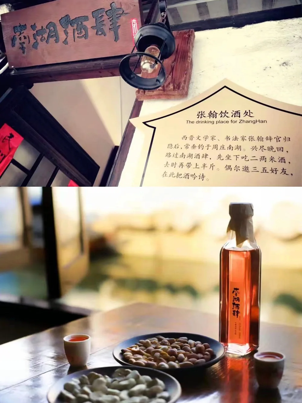 在周庄老街深处,藏着一家宝藏小店,南湖酒肆。店铺不大,却大有来头,这里曾是西晋文学家张翰饮酒处。