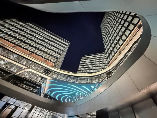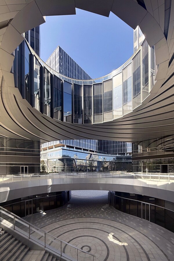 晶耀虹桥汇聚全球知名设计施工团队:由世界知名建筑设计事务所NBBJ领衔设计,三菱地所设计公司负责室内与景观设计,中建八局承担建设任务。以绿色、智能、互联为核心理念,项目通过创新空中连廊设计,将五栋甲级办公楼与特色商业空间无缝链接,同步打造标志性钻石立面、激发灵感的云上花园、促进多元社交的露天剧场、流光溢彩的艺术光圈等特色场景,构建出立体互联的花园式商务环境,让工作与休闲、商业与自然实现有机融合,营造独一无二的空间体验。