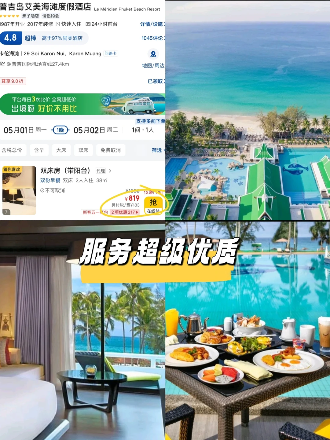 优势:网红酒店,海滩边上,有独立泳池,儿童设施,SPA,健身房,酒吧,浮潜等几十个娱乐设施