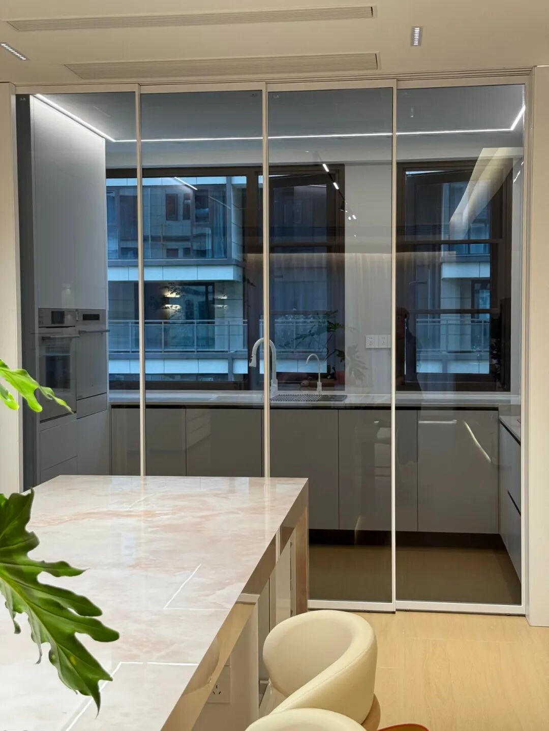 厨房的推拉门,那都是十年前的老黄历了,现在还这样做就真过时了。