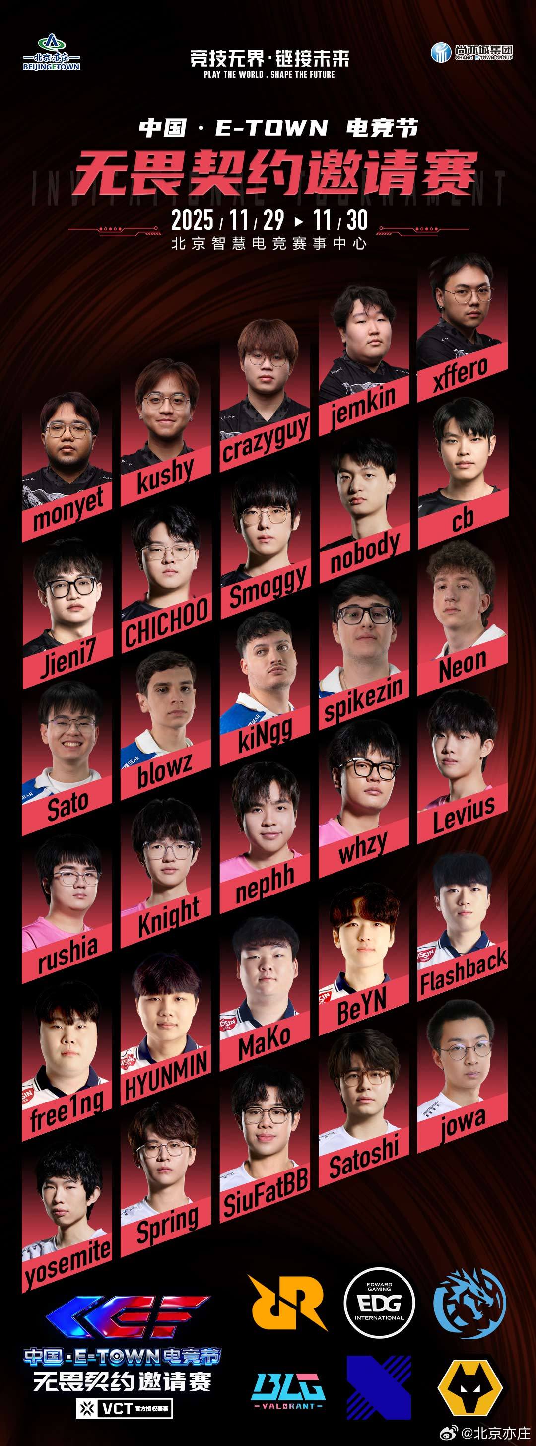 11月29日-11月30日,第二届中国电竞节超级冠军杯《无畏契约》国际邀请赛即将在亦庄震撼上演!各大战队将强强对抗,为我们展现不一样的对决风采!目前参赛选手名单已出⬇⬇