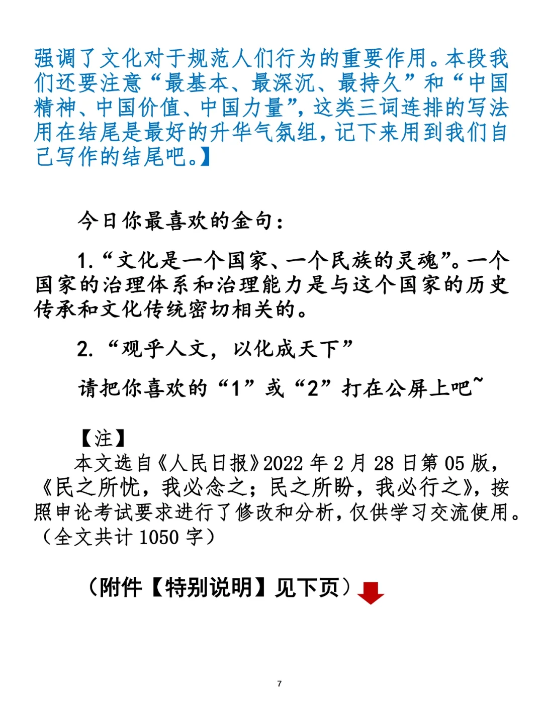 近年来申论考试越来越呈现出多考点叠加、主题复杂化的倾向,因此,我们也要注重对于这类主题的学习。 今天,我们就用一篇申论范文,一起学一学“文化+社会治理”。 ⭐️ ⭐️ ⭐️ ⭐️ ⭐️ ⭐️ 这里是公考隔壁班王老师独创的“每天半小时 申论80分”抄写团,欢迎加入我们!