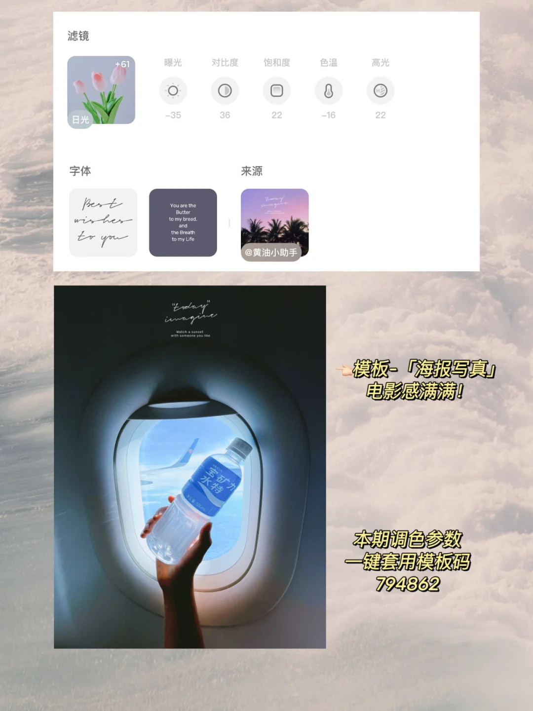 ✨太喜欢在窗口看着飞机飞行!随手拍也是大片!后期裁图一下,干净又高级!生活中有一双发现美的眼睛,就会有好多好看的照片啦~ . 💻 后期修图教程 黄油相机 滤镜:日光+61 曝光-35 对比度+36 饱和度+22 色温-16 高光+22 . 字体:Signeton、Rubik Regular 模板:「海报写真」模板分类 . 手机调色|调色教程|黄油滤镜调色|调色软件 | 滤镜调色教程| 拯救废片 | 手机拍照 | 手机摄影 喜欢我的分享记得👍🏻|⭐收藏|关注哦 我们下一期再见!🤍