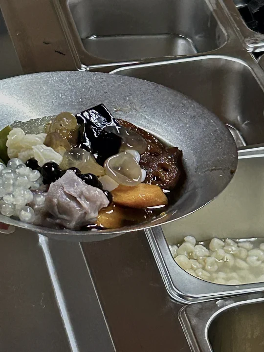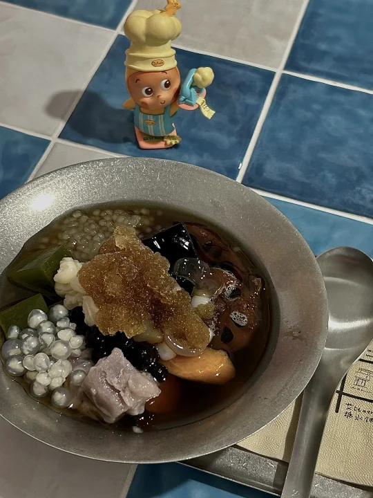 是塞車都要去吃的「秋天第一碗糖水」 雖然很佔肚但蜜薯和糖藕真的巨巨巨哇噻 麻煩老闆娘下次冰再給多點好嘛不夠吃嘿嘿 - 🔎 艾比隔壁的糖水鋪 潮汕十全大甜湯 -