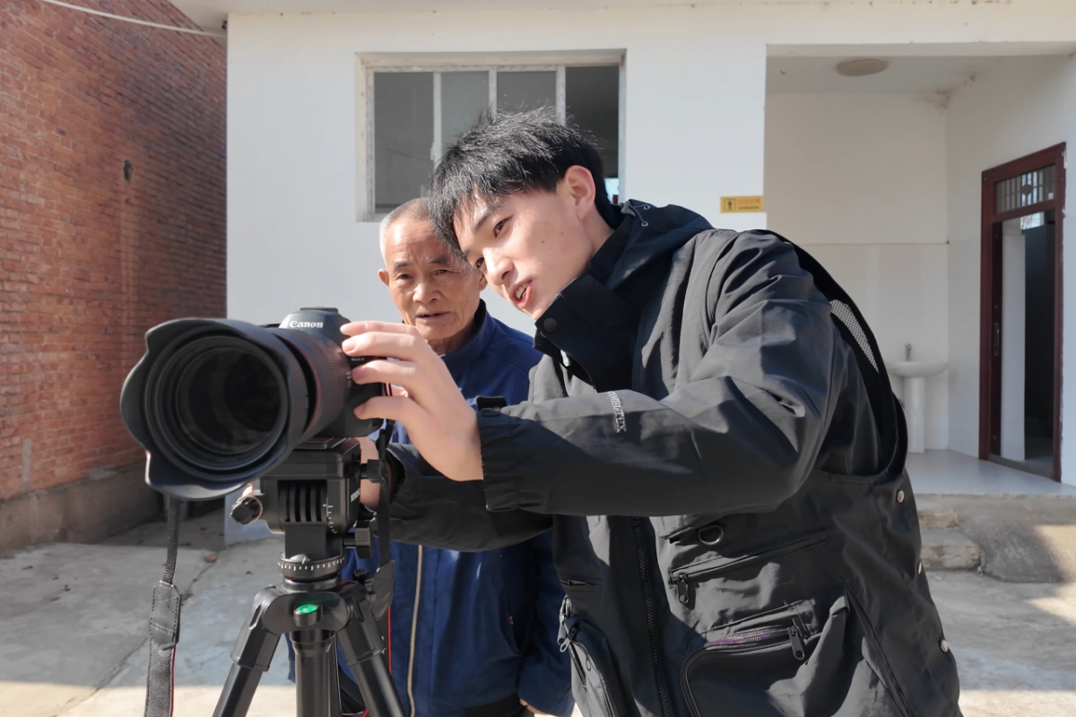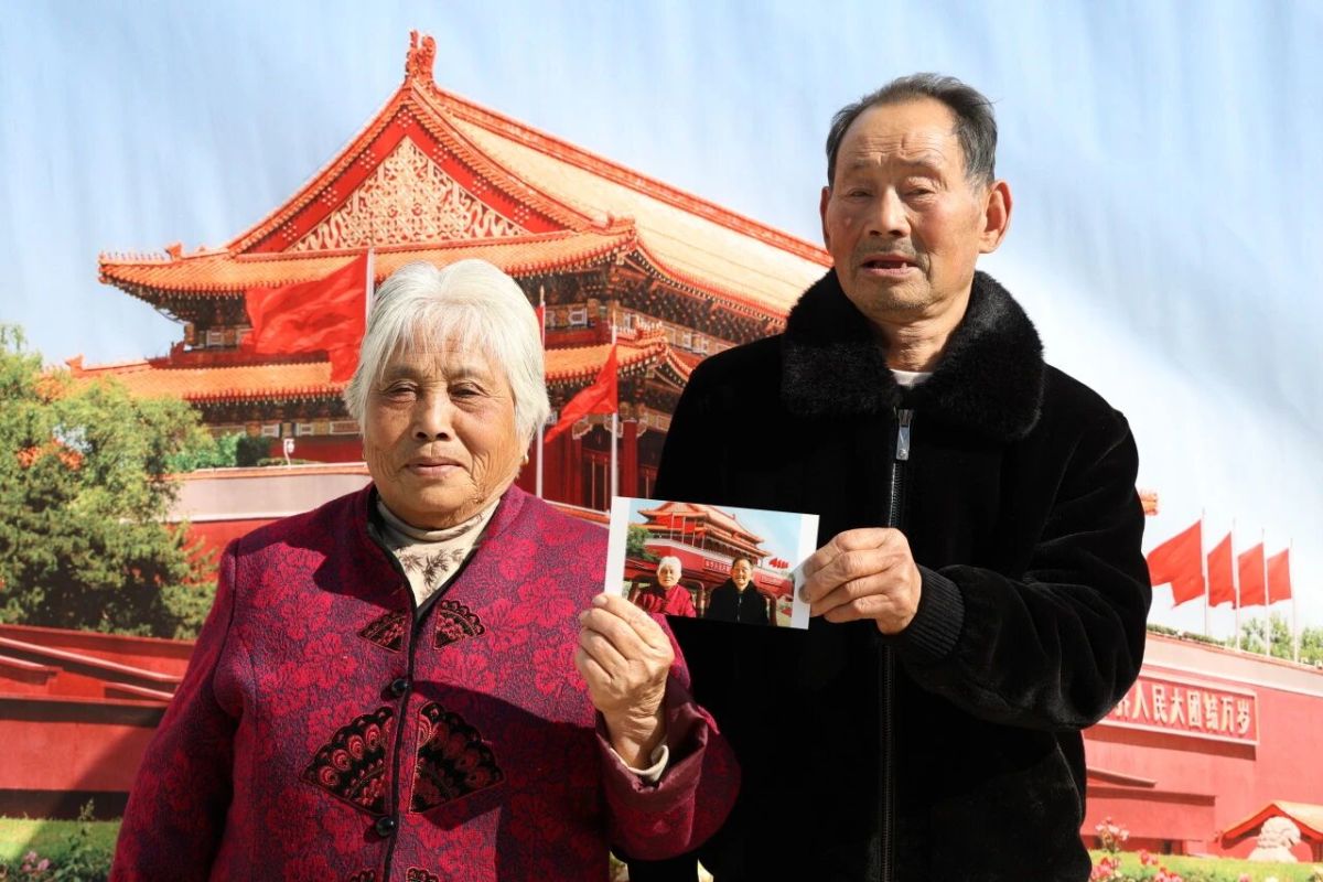 在临时搭建的拍摄点,该校融媒体中心的学子们专注调整幕布角度,同伴则同步调试相机参数。两张幕布、两台相机与几副三脚架组成的简易设备,很快吸引了大批闻讯而来的老人,大家驻足围拢,眼神中满是对“在天安门留影”的期待。这些老人大多年事已高,部分因身体原因常年未出远门,“到首都看看”成了藏在心底的心愿。