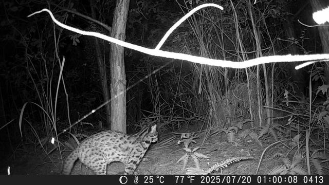 小灵猫主要栖息于热带、亚热带低海拔森林环境,性格机敏胆小,为独居夜行性物种。此次监测捕捉到的清晰影像显示,小灵猫行动矫健、状态健康,不仅在林下穿梭时展现出灵动身姿,其夜间明亮的眼部反光更凸显了物种的原生习性。这些记录为研究小灵猫的种群分布、栖息偏好及繁殖规律提供了极具价值的第一手资料,也印证了新晃森林生态系统食物链的完整性与稳定性。