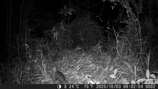 怀化日报全媒体讯近日,新晃侗族自治县林业局联合湖南省森防科技有限公司开展重点野生动物专项监测工作。工作人员在整理回收的红外相机数据时惊喜发现,国家一级重点保护野生动物小灵猫(Viverriculaindica)的活动踪迹在全县11个乡镇被连续记录,其中米贝苗族乡拍摄到的“双猫同框”画面尤为珍贵,成为该物种的罕见生态记录。