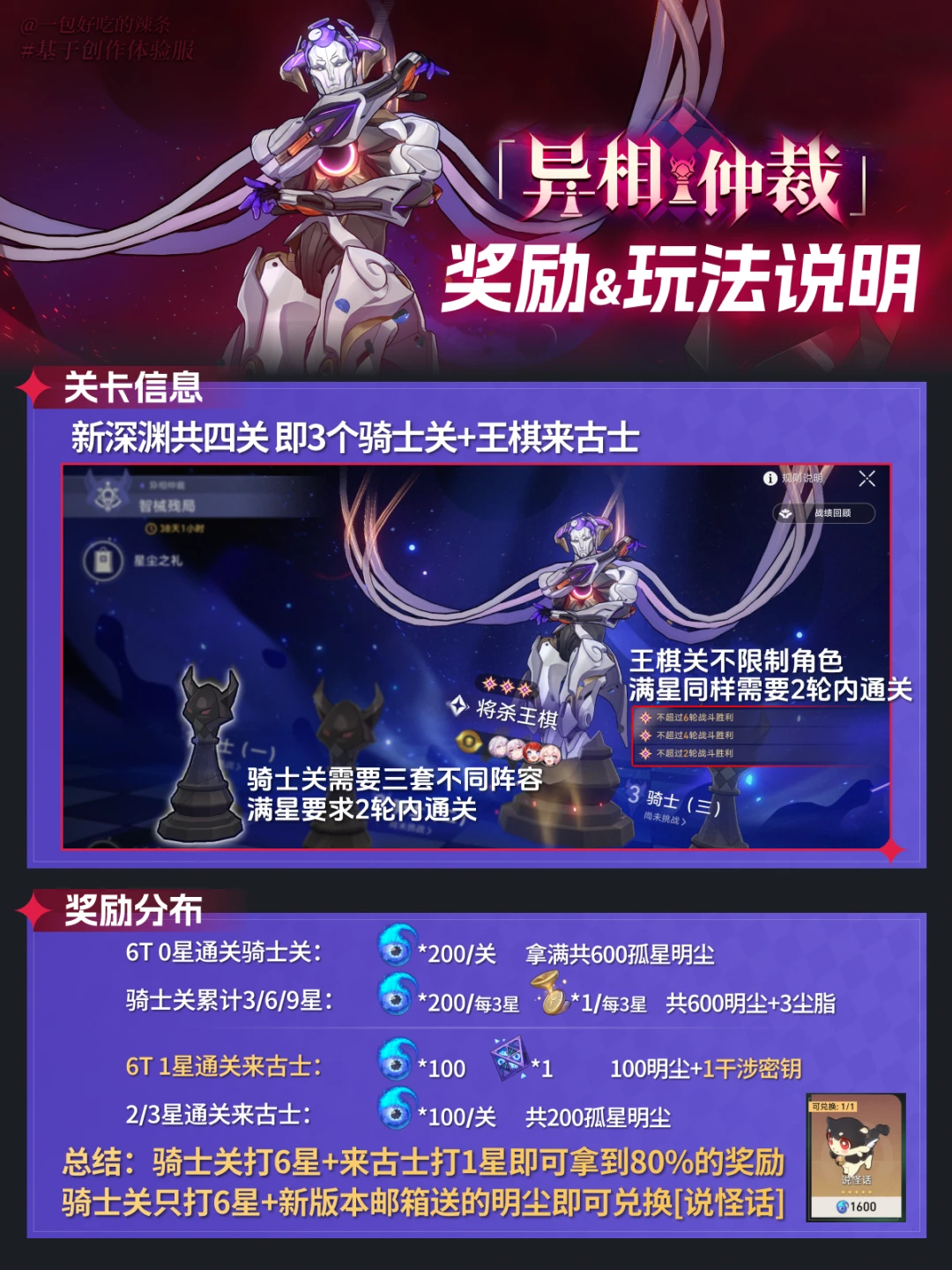 滴滴!这里是辣条 这条是新深渊玩法 奖励和机制的介绍 希望能帮助到大家 王棋关和骑士关的推荐阵容已同步更新 欢迎到主页查看