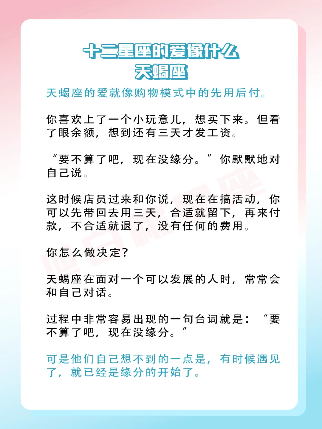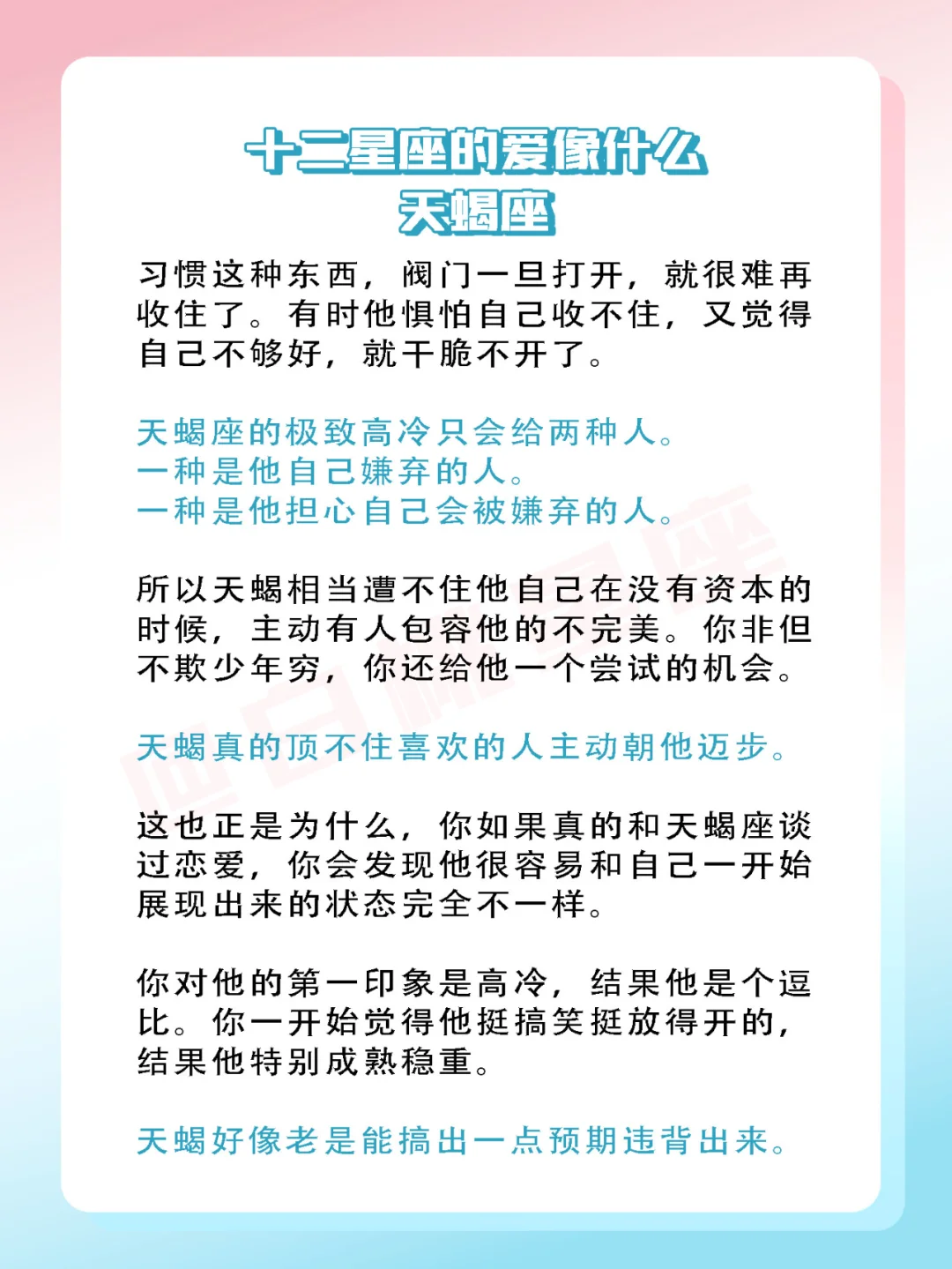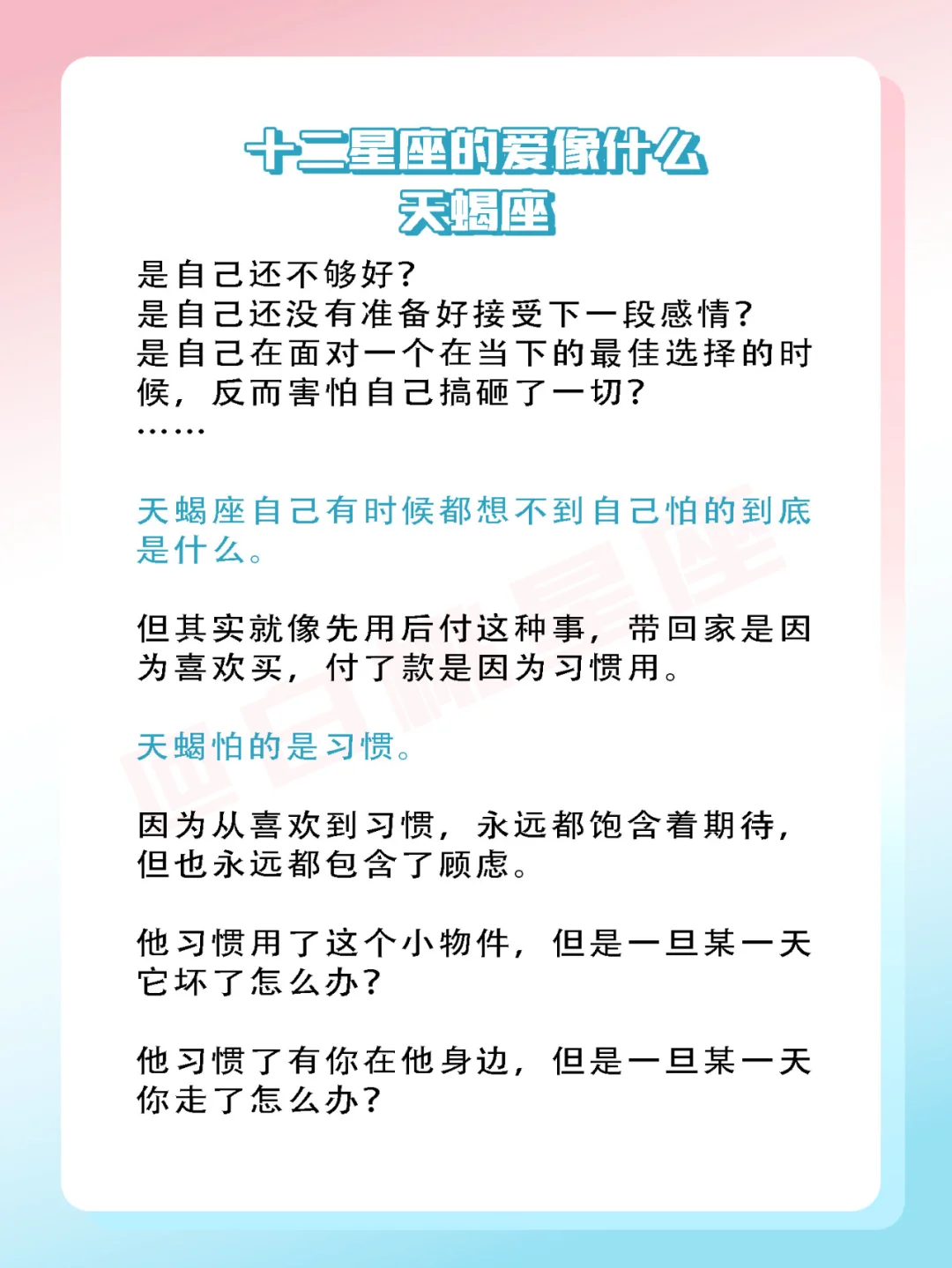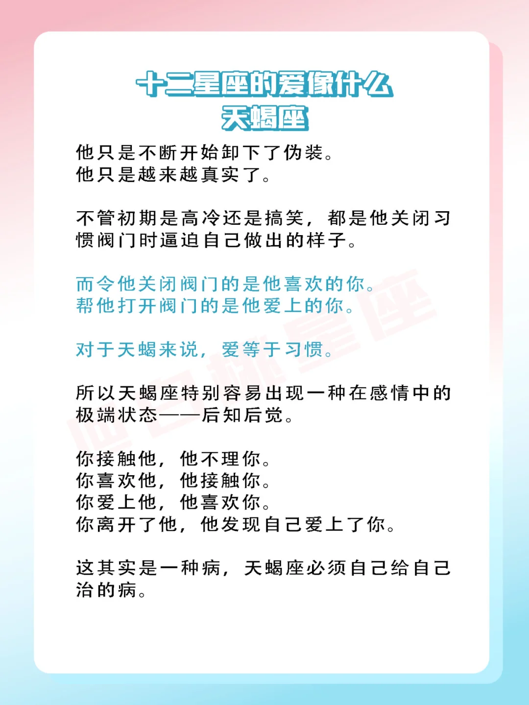 『白桃星座』对于天蝎来说,爱等于习惯。