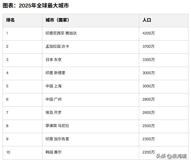 2025年11月发布的《2025年世界城市化展望》报告称,印度尼西亚首都雅加达以近4200万人口成为全球最大城市。报告发现,人口超过1000万的“超大城市”数量从1975年的八个增加到如今的33个,其中 19个位于亚洲。 在2018年的上一份报告中,东京曾位居榜首,而雅加达仅排在第33位。这一巨大变化主要归因于过去25年东京人口增长放缓以及联合国对城市人口统计口径的调整。 报告指出,全球人口最多的前十个城市中,有九个位于亚洲,凸显了亚洲地区快速城市化的趋势。雅加达正面临包括空气污染和地层下陷在内的严峻环境挑战,印尼政府也因此计划将首都迁至努山塔拉(Nusantara)以缓解雅加达的压力。