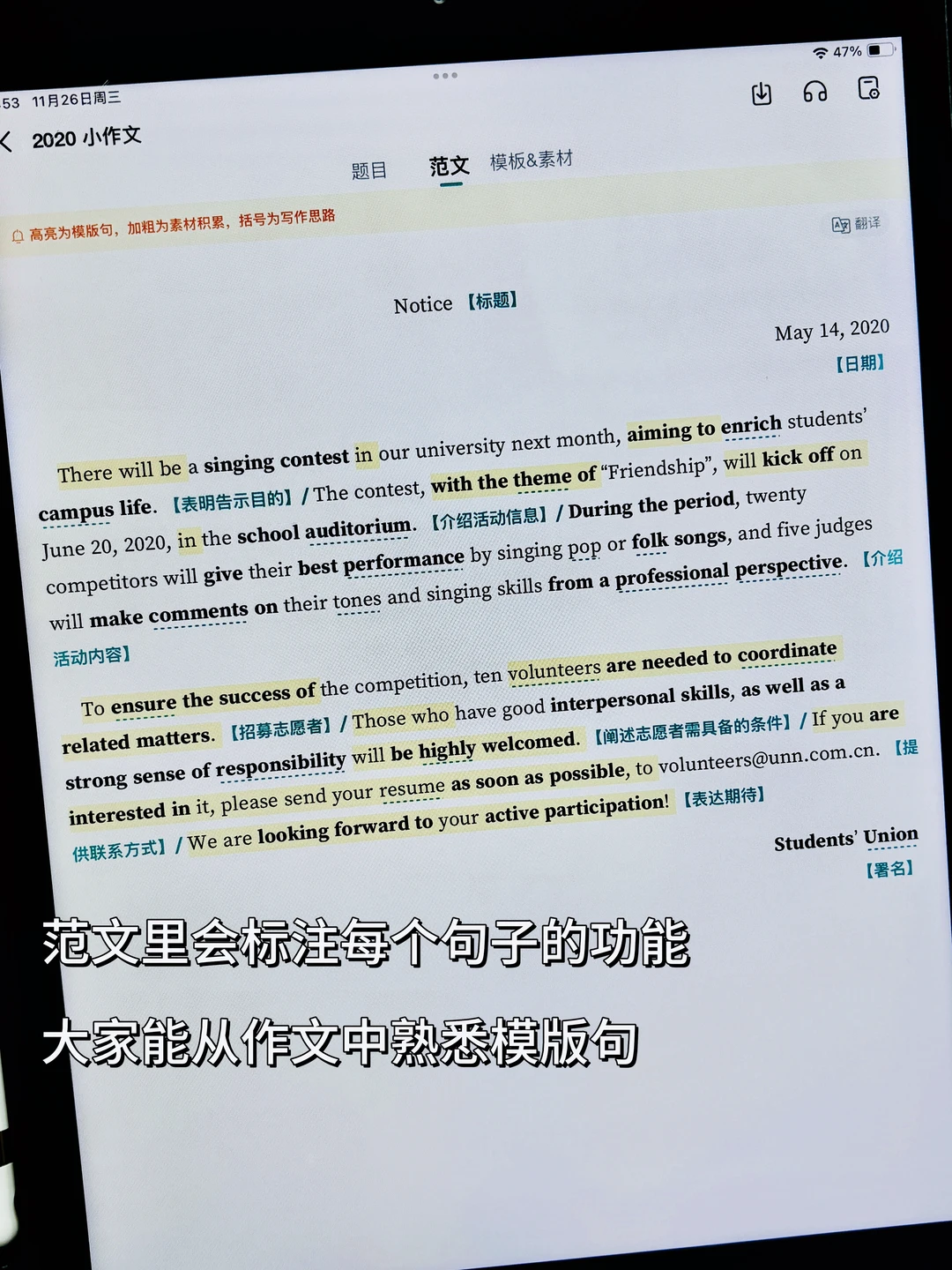 距离26考研还有24天,不知道大家准备的怎么样了,希望大家都还在坚持备考! 这个小作文模板合集总共包含4种小作文模板,分别是通知(有两种:活动组织和社团招募)、推荐信、投诉信 26考研二战考研考研英语考研倒计时考研英语作文