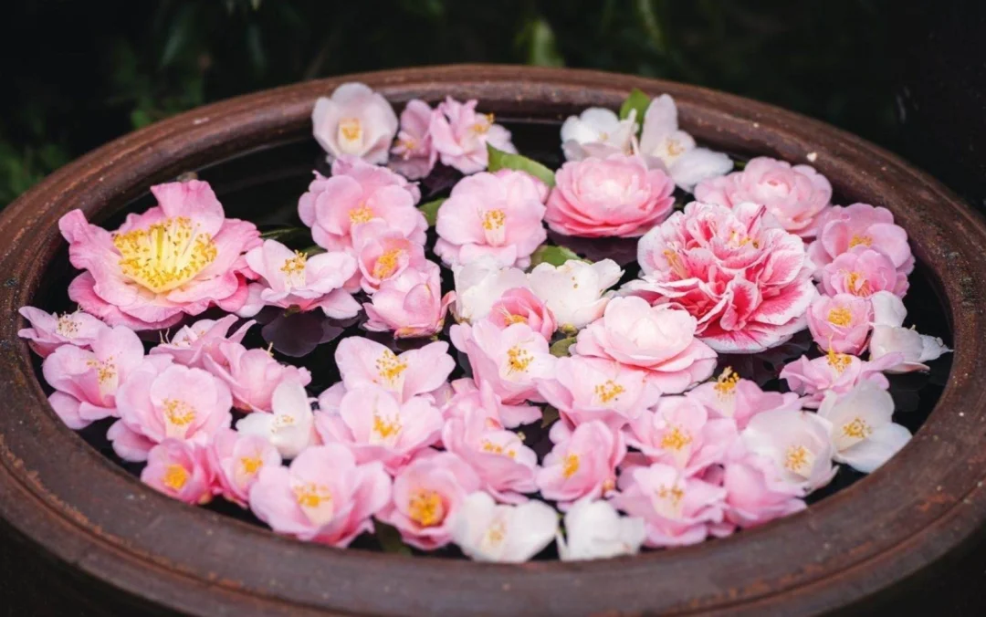 🎐值得看:山茶花🌸,日语叫做椿。灵鉴寺被称为“椿之寺”,椿的种类竟有100多种。更奇妙的是,百椿百态,美各不同。先是门口满开的椿树,紧接着是生长在青竹上一排排的椿、浮在水钵中的椿;落椿满地,仿佛织就得红毯;难得一见的珍惜品种日光椿;青苔上,可爱的花朵,让人分不清是落椿🌸,还是原本就生长在那里……各具风味,打动人心❤