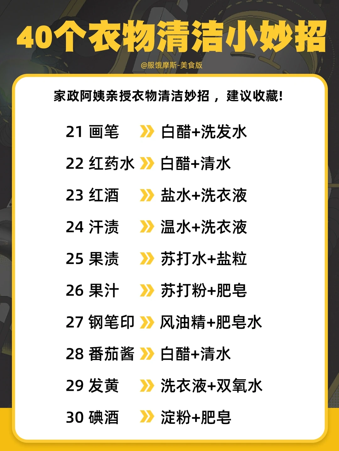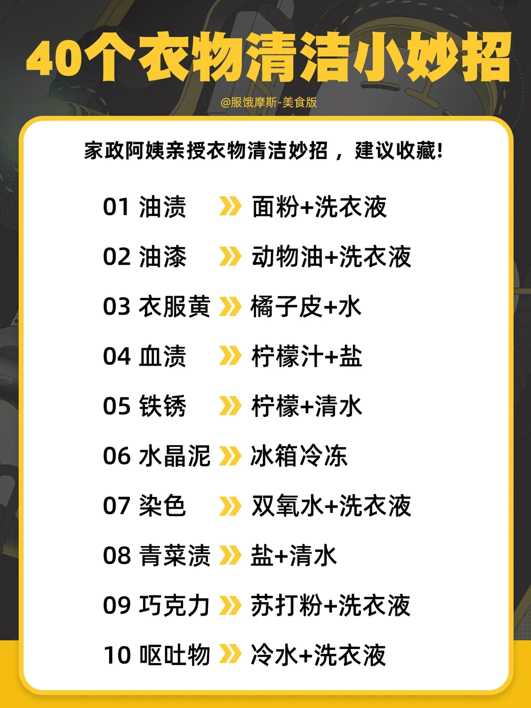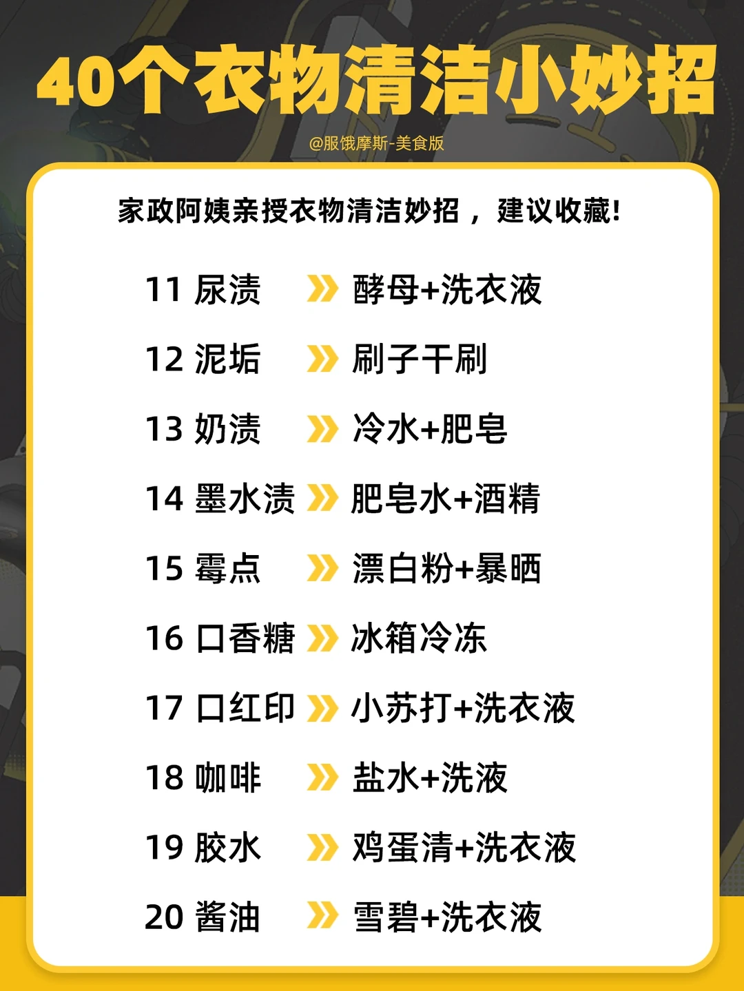 🔥40个衣物清洁小妙招,家政阿姨新授