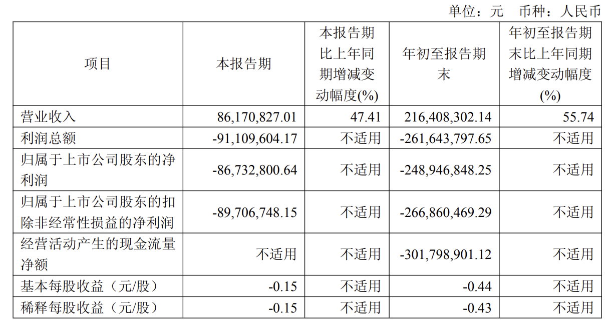 今年前三季度,亚虹医药实现营收2.16亿元,同比上升55.7%,扣非归母净利润亏损2.67亿元,较去年同期的2.86亿元亏损额有所收窄。从单季度表现来看,其营收为8617万元,同比上升47.4%,但扣非归母净利润为亏损8971万元,较去年同期8907万元的亏损额略有扩大。营收的增加系已实现商业化上市两款产品的销量增加所致。