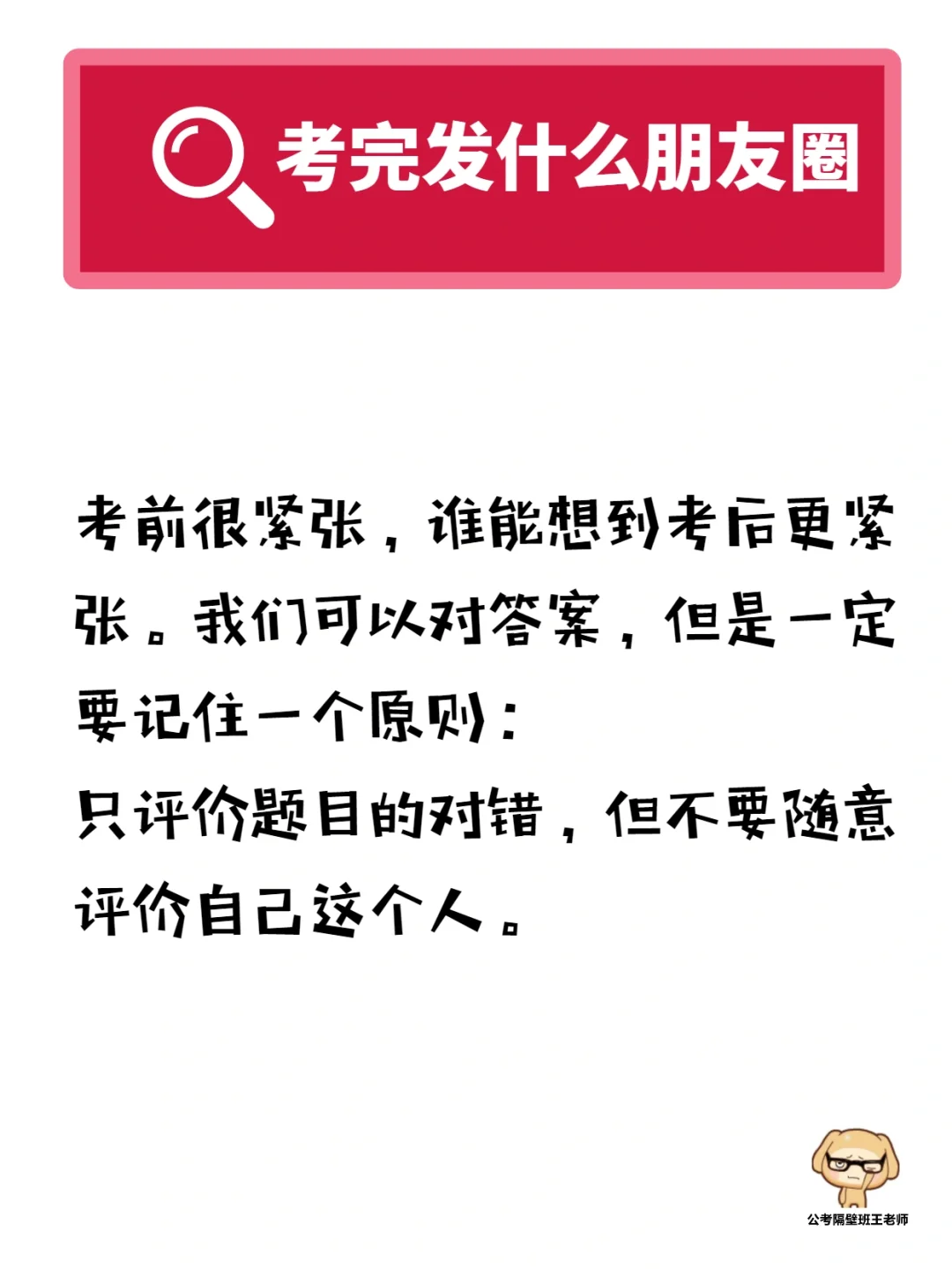 6. 考前很紧张,谁能想到考后更紧张。我们可以对答案,但是一定要记住一个原则:只评价题目的对错,但不要随意评价自己这个人。