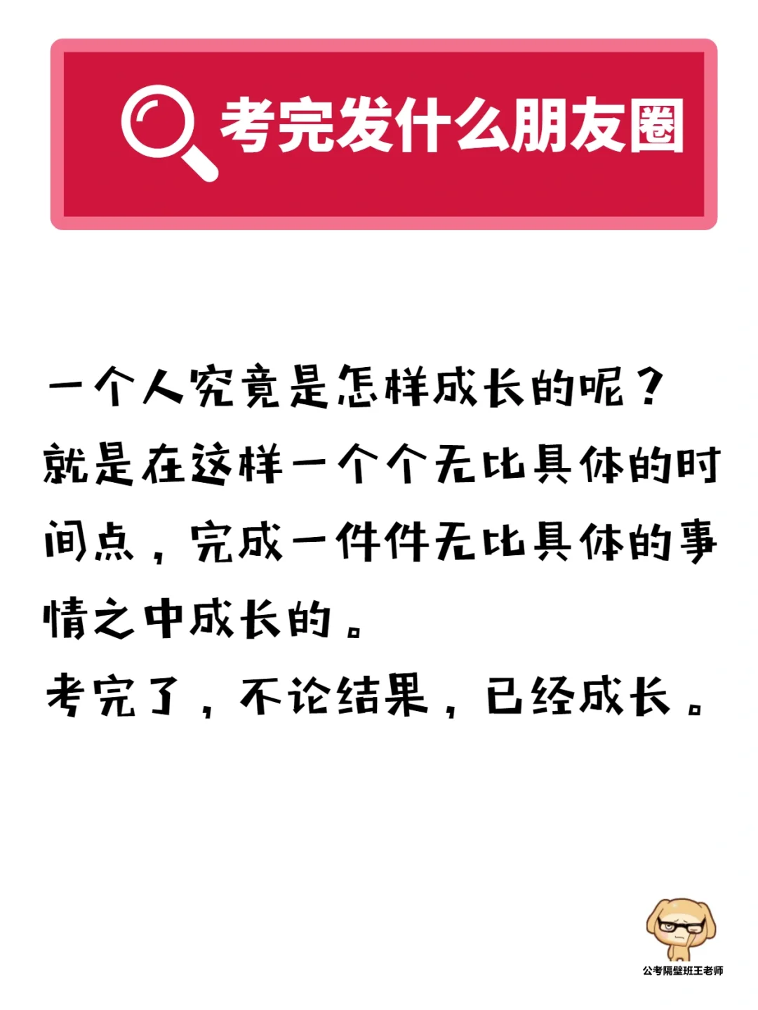 2.一个人究竟是怎样成长的呢?就是在这样一个个无比具体的时间点,完成一件件无比具体的事情之中成长的。考完了,不论结果,已经成长。