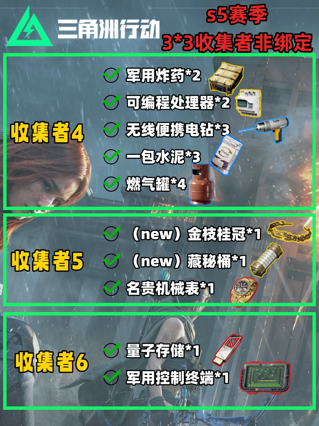 最新三角洲3x3任务s5收集者1-6!提前囤货