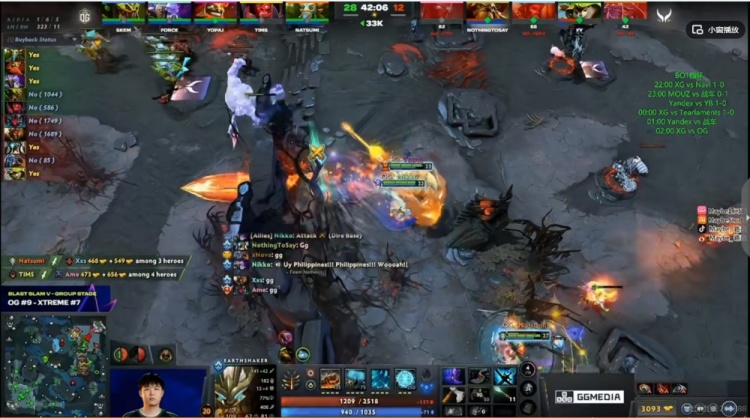 [33分钟]双方团战五号位互换,不过回头状态更好的OG还是控下了二代肉山!Natsumi先知继续带盾!