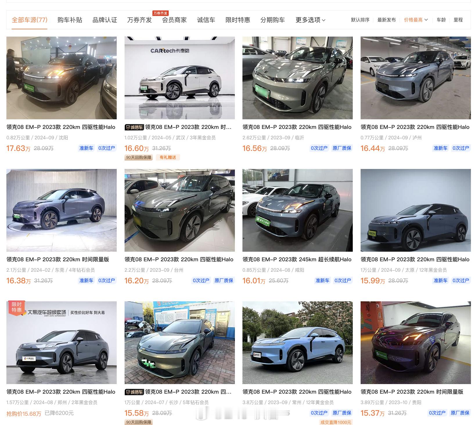 我的领克08em-p 时间限量版卖了17万。这几天税务局的老跟财务核查这台车,主要疑点:“不到两年的车为什么才卖了不到6折?(原价28.8万购入)”这位工作人员很认真,但是真不了解这两年的车市行情。然后我给财务发了些资料,方便她去解释:首先新车降价,目前领克08新车最贵的才22万出头,叠加上优惠和补贴,实际成交价甚至能做到20万出头;其次,二手车行情普遍低,我提供了第三方平台链接,最低的都不到10万,最贵的17万出头,这还都是商家的报价。希望这位税务的同志能够理解