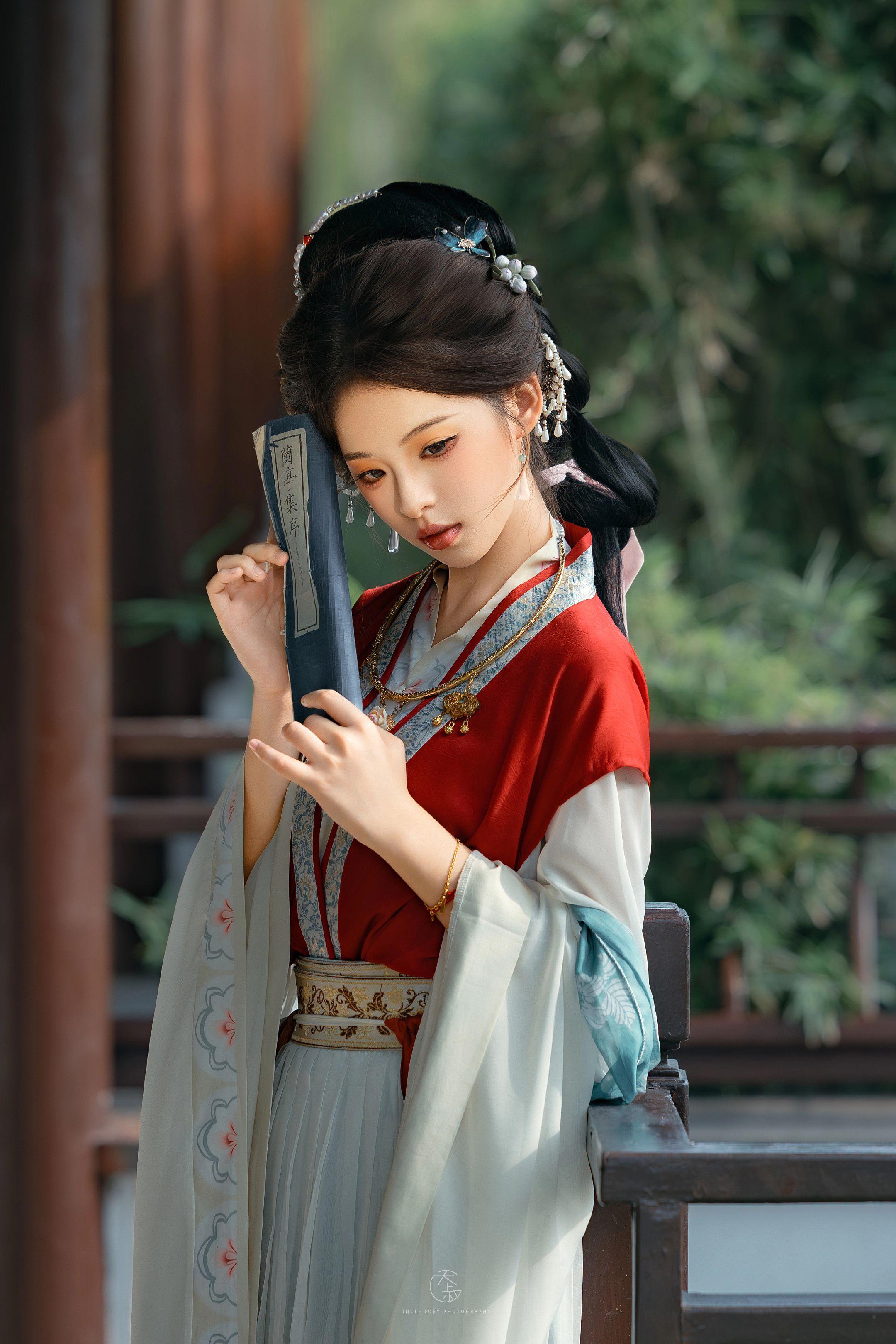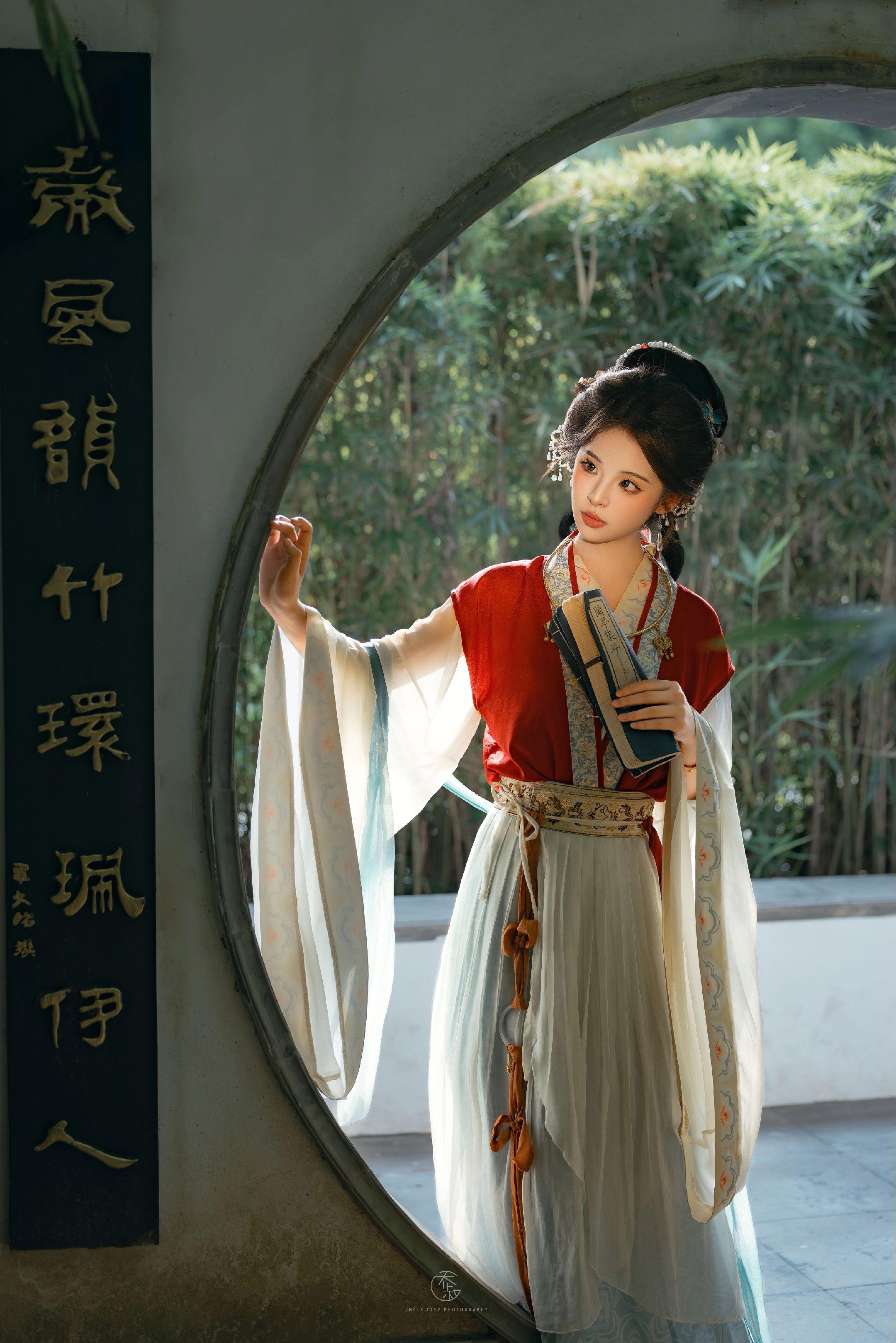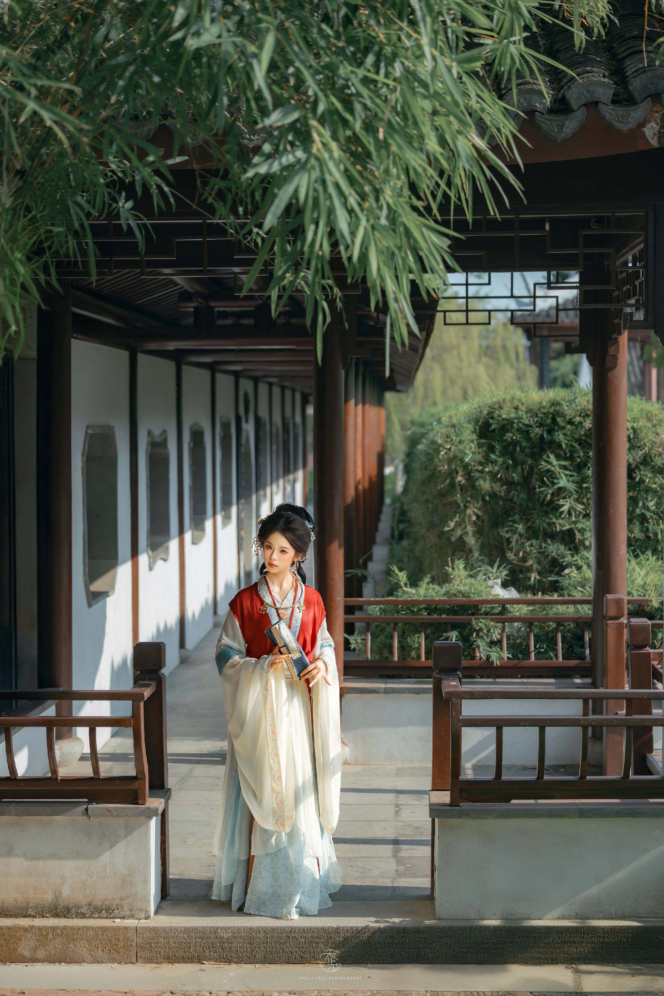 宋仕女“微风拂袖伴伊人,细雨湿襟思旧梦”