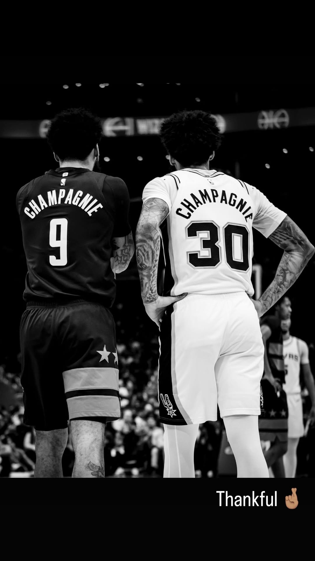 虎扑11月28日讯马刺队朱利安-尚帕尼更新个人社媒,晒出自己与哥哥贾斯汀-尚帕尼的赛场合影。