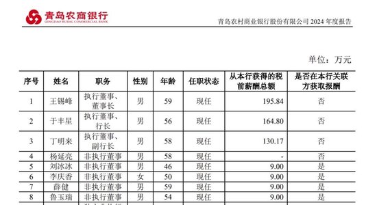 在金融业普遍推行“限薪令”的行业背景下,据该行相关年报数据,2023年及2024年,王锡峰分别以187.26万元、195.84万元的税前年薪,连续两年蝉联A股上市农商行董事长薪酬榜首。