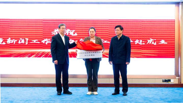 活动现场,中国环境新闻工作者协会浙江办事处顺利揭牌。