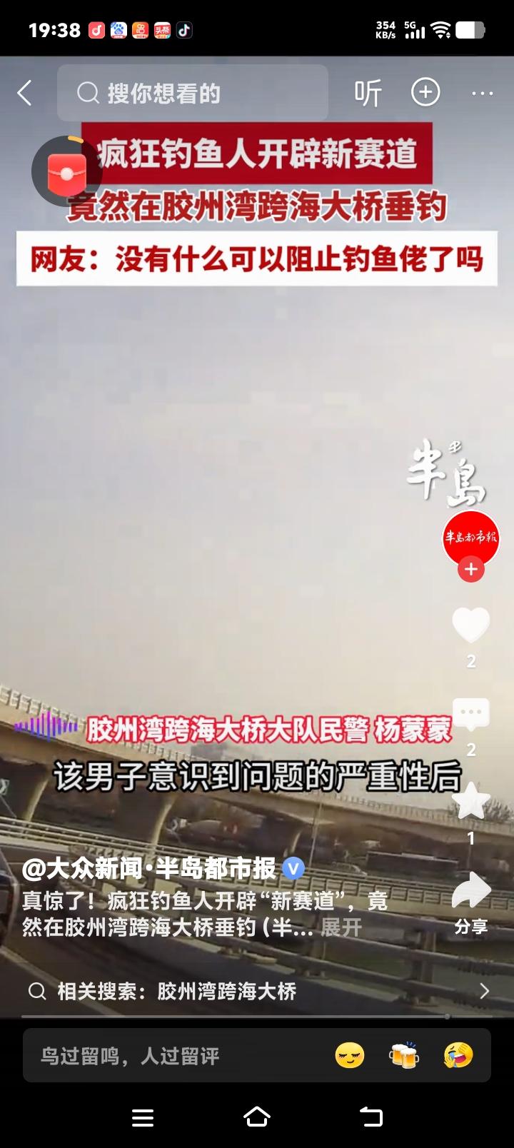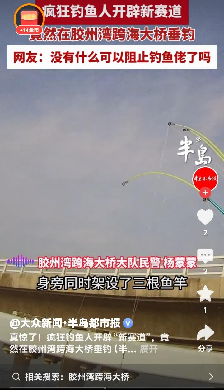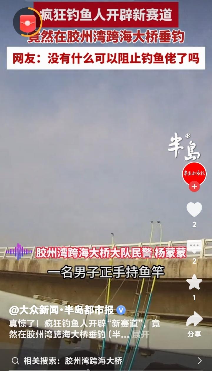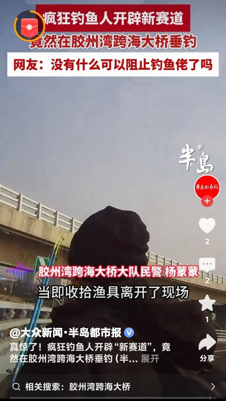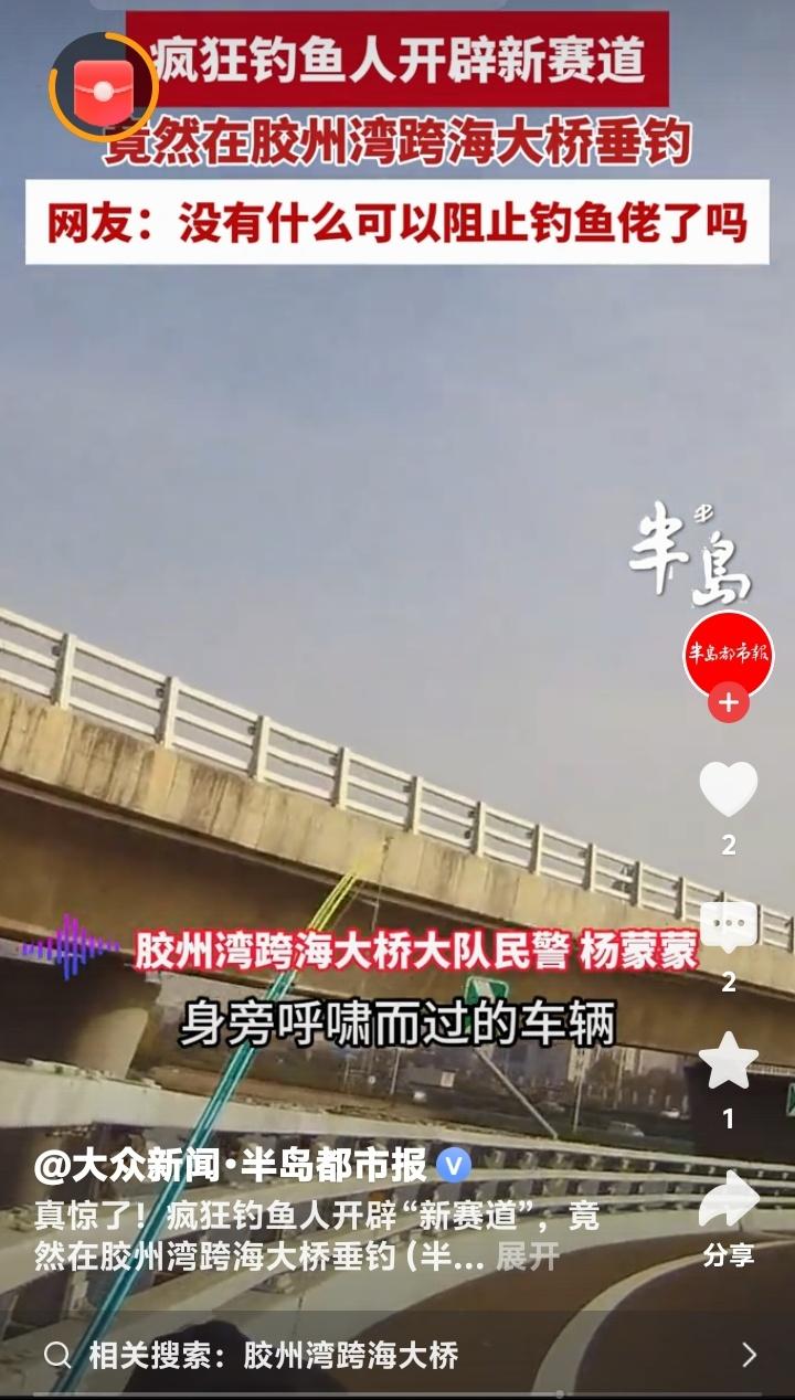 钓鱼佬青岛胶州湾跨海大桥玩命垂钓惊呆交警!网友惊呼:为了钓鱼连命都不要了吗?青岛胶州湾上演现实版生死时速 (來源:半島都市報) 潮水退去时他提着鱼竿愣在原地,望着空荡荡的海岸线心有不甘。这个午后本该有收获,错过最佳时机的焦虑在心头蔓延。突然他抬头望向远处蜿蜒的胶州湾跨海大桥,一个疯狂的念头在脑海中闪现。半小时后,这个执着的钓鱼人竟出现在胶州湾跨海大桥匝道弯道处,全然不顾身旁呼啸而过的车辆。 三根鱼竿在护栏边一字排开,水桶里几条小鱼游弋。他专注地盯着浮漂,仿佛置身于宁静的湖畔而非危险的高速公路。执勤民警杨蒙蒙巡逻至此简直不敢相信自己的眼睛,飞驰的车流中竟有人在此垂钓。紧急停车、设置警示、上前劝阻,一连串动作间都透着后怕。 “就想试试运气。”面对询问,钓鱼人轻描淡写地说道。原来海边钓点因退潮无法垂钓,他便将目光投向了跨海大桥下的深水区。为了“不白跑一趟”,他翻过护栏来到这个致命钓点。殊不知每分钟都有数十辆车以百公里时速从他身后掠过。 这个看似荒唐的行为背后,藏着现代人难以言说的执念。当生活节奏越来越快,钓鱼成为许多人逃离压力的方式。但当热忱变成执念,理智便被抛之脑后。那种“绝不能空手而归”的念头,让这个钓鱼人忽略了最基本的危险。 民警的批评教育让他恍然醒悟。站在路肩那刻,他才真正感受到车辆驶过带来的强烈气流。生死一线间的顿悟来得如此突然,他收拾渔具的手开始微微颤抖。或许今晚的餐桌上会有几尾小鱼,但这份收获与承担的风险完全不成正比。 专业人士指出,在高速公路突然出现的行人,会让司机本能地急打方向。这样的条件反射可能引发连环事故,后果不堪设想。去年某跨海大桥就因类似情况导致八车追尾,三人重伤。这些血的教训却未能警醒每一个心存侥幸的人。 网友们的反应空前热烈。“这是用生命在钓鱼”“没有什么能阻挡钓鱼佬的脚步”等评论刷屏。在戏谑之余,更多人表达了担忧。当特殊爱好演变成危险行为,它就失去了原本的意义。追求休闲却走向冒险,这样的矛盾发人深省。 每个人心中都有一座“跨海大桥”,在诱惑面前权衡风险与回报。那位钓鱼人的故事给我们敲响警钟:任何时候,安全都应该是不可逾越的底线。追求爱好的路上,别忘了家的灯光还在等你归来。 青岛身边事 青岛钓鱼