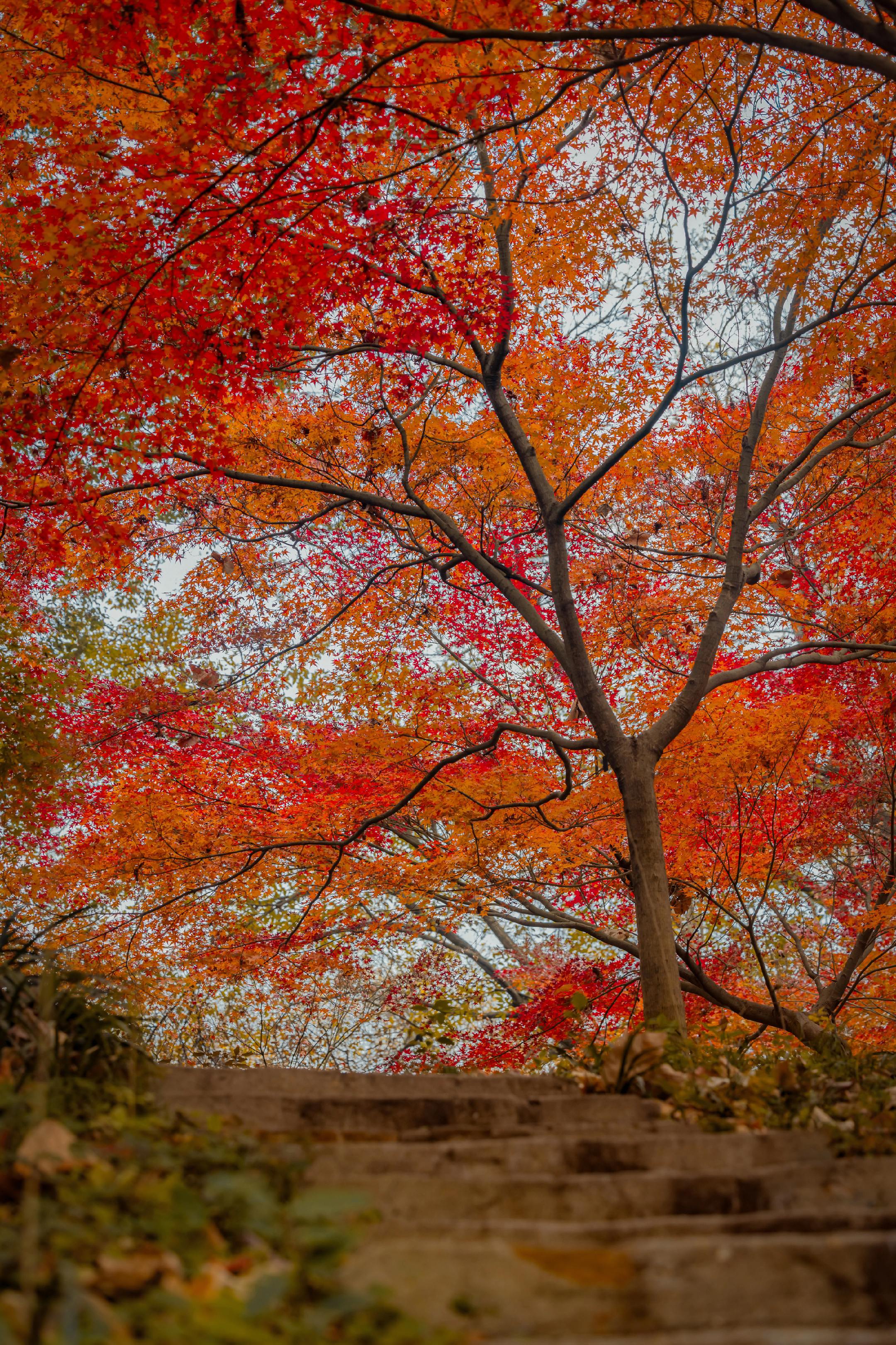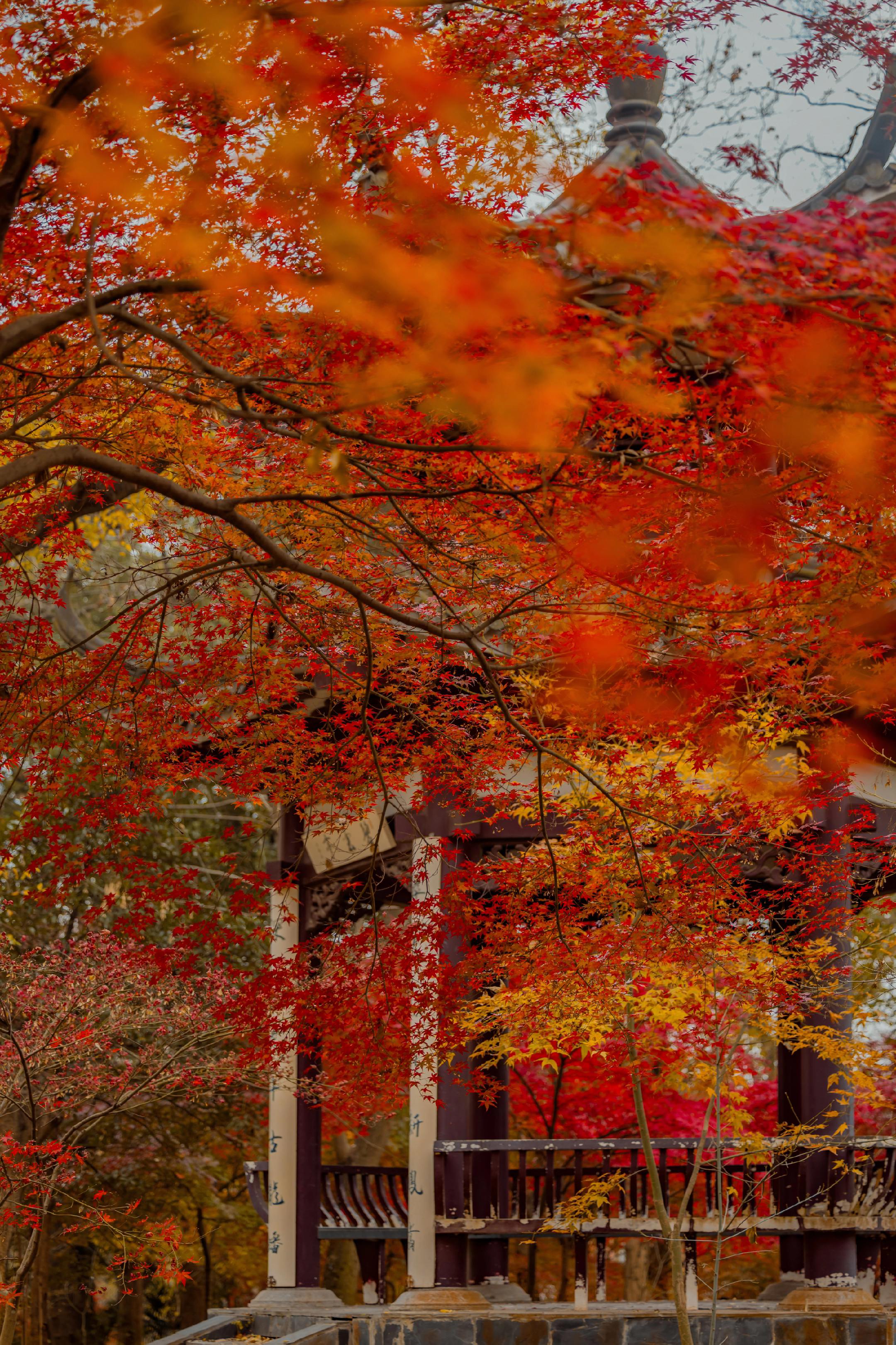 11.28实况南京的秋天红枫杀疯了!南京中山植物园·红枫岗的枫叶红了 一走进红枫岗直接被美到失语 层层叠叠的枫树从翠绿到橙黄再到绯红 像是上帝打翻了调色盘 阳光透过枫叶洒下来的光斑绝美!! 石板路、小木桥、亭子都超有意境