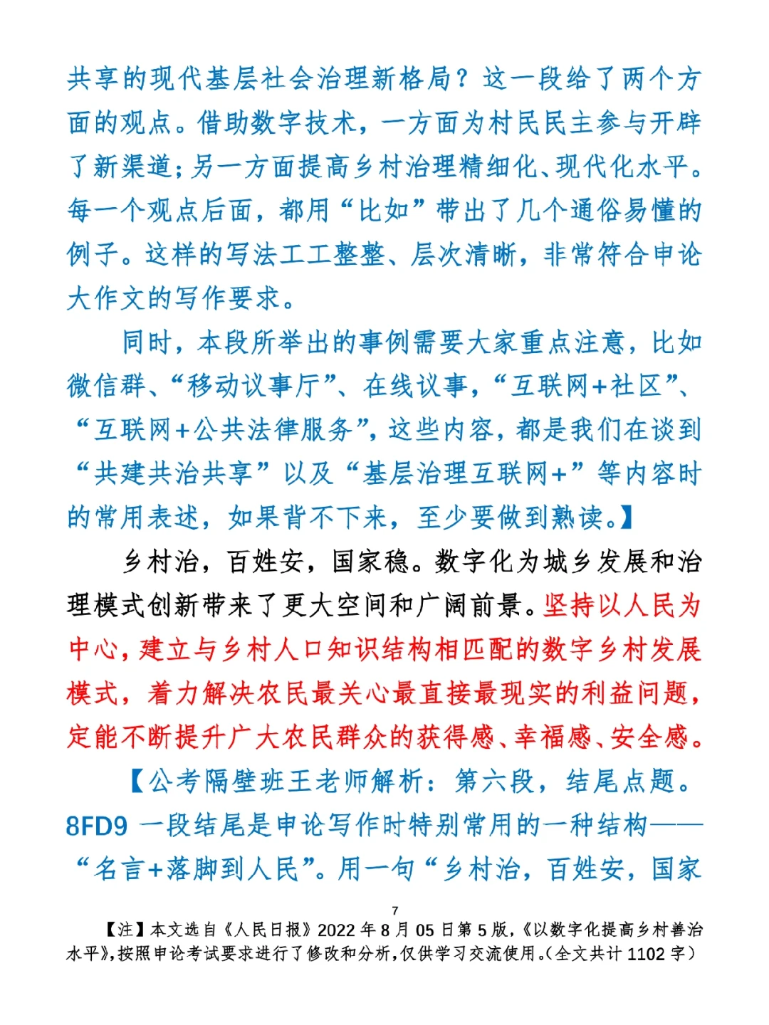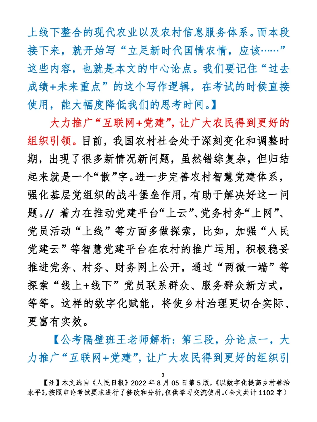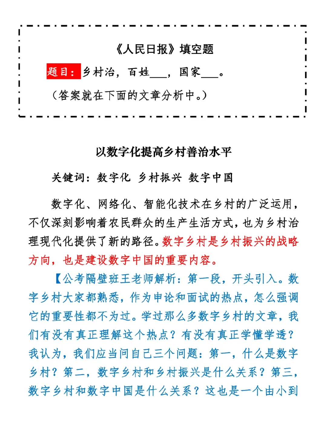 今日打卡作业: 1. 完成填空题 2. 抄写全文红字+划线部分内容 3. 写完后在留言区打卡 ⭐️ ⭐️ ⭐️ ⭐️ ⭐️ ⭐️ 如何抄写:每天的抄写文章以图片形式发在“公考隔壁班王老师”账号,红色字是重点句和结构句,黑色字是正文,蓝色字是解析,大家抄写时不必抄蓝色字。建议先通读全文(包括蓝色解析部分),做到心中有数再开始抄写,效果会更好。 关于文章:抄写文章来源于人民日报,但每篇文章我都根据申论考试要求进行了修改,主要集中在四个方面:一是重写或修改开头、结尾;二是统一段首句句式结构;三是调整段落字数,使文章结构更均衡;四是简化复杂长难句,使之更具可模仿性。每篇文章修改幅度不同,无论修改多少,都是基于申论考试要求,毫无对人民日报文章品评之意。(此处致敬人民日报) 关于解析:我会在文章每段后面加一段蓝色字的解析,是我自己在抄写时的感悟,篇幅时间有限,不能面面俱到,但求重点突出。如果你有其他感悟,也希望能在评论里分享,我们相互学习、共同进步。 ⭐️ ⭐️ ⭐️ ⭐️ ⭐️ ⭐️ 这里是公考隔壁班王老师独创的“每天半小时・申论80分”抄写团,欢迎加入我们!