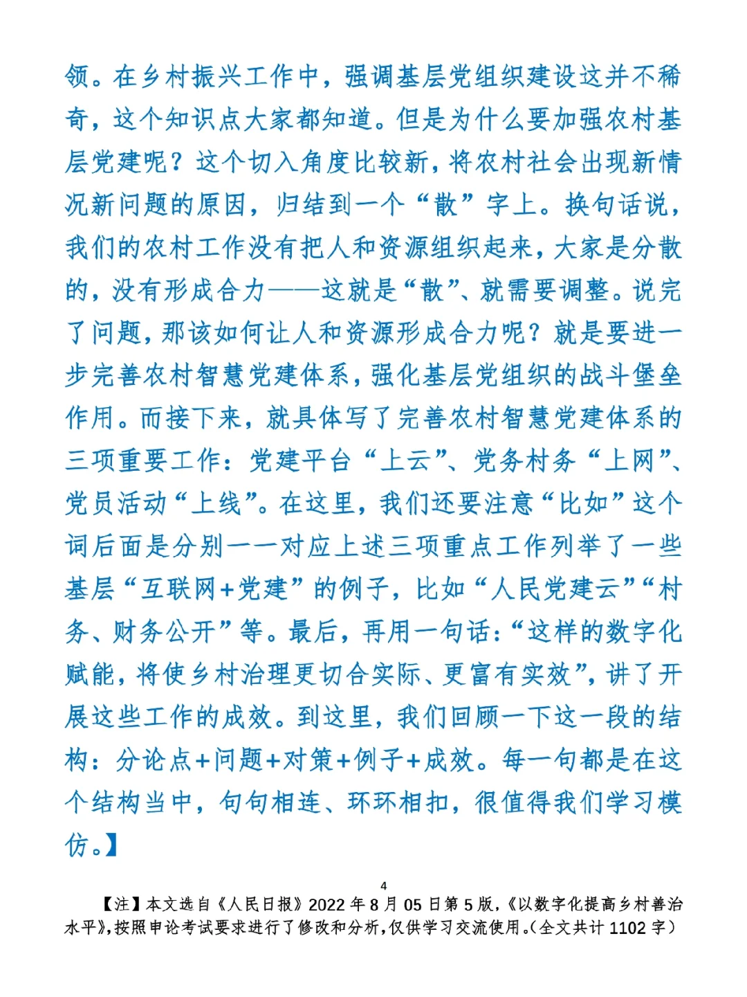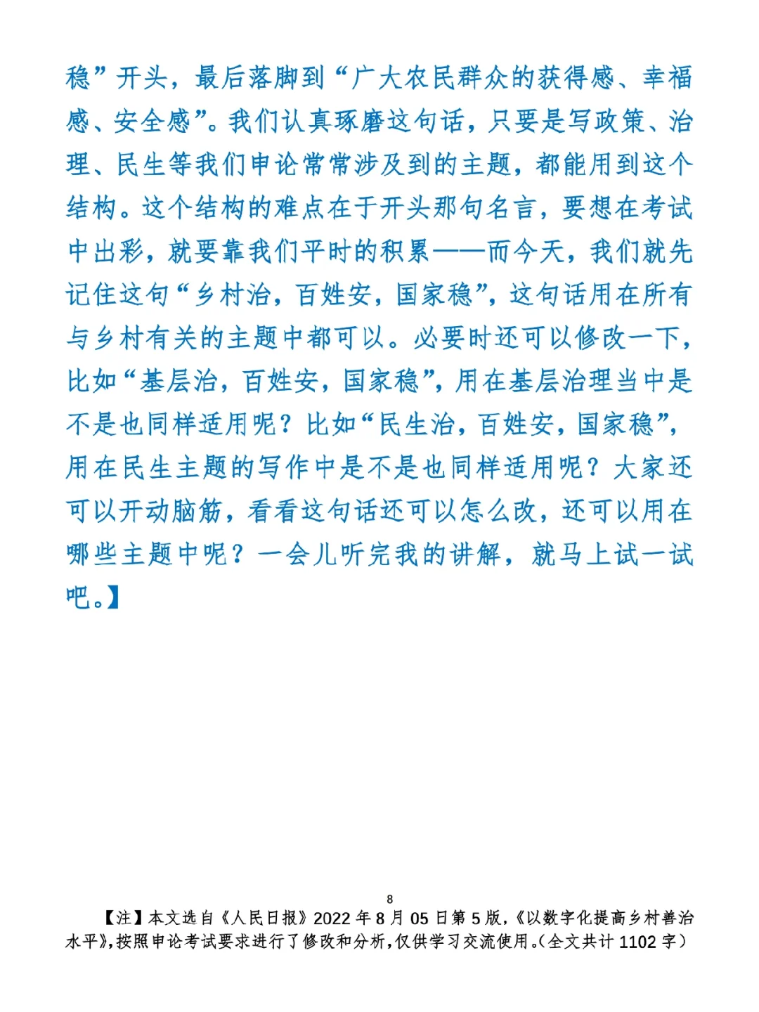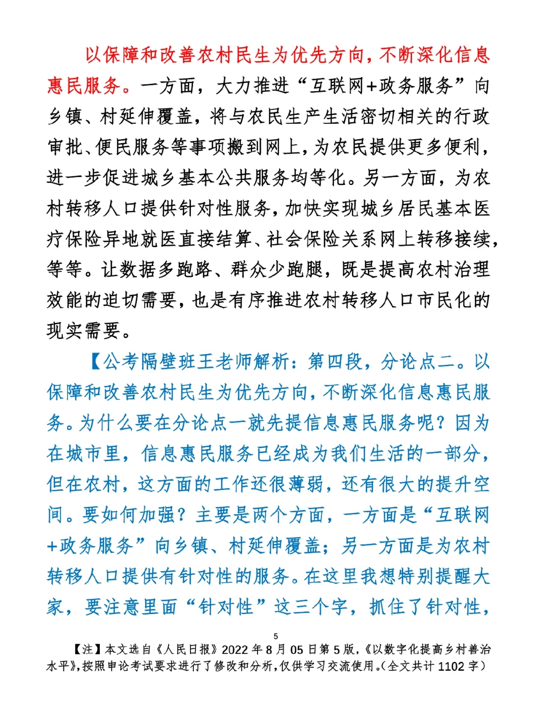 今日打卡作业: 1. 完成填空题 2. 抄写全文红字+划线部分内容 3. 写完后在留言区打卡 ⭐️ ⭐️ ⭐️ ⭐️ ⭐️ ⭐️ 如何抄写:每天的抄写文章以图片形式发在“公考隔壁班王老师”账号,红色字是重点句和结构句,黑色字是正文,蓝色字是解析,大家抄写时不必抄蓝色字。建议先通读全文(包括蓝色解析部分),做到心中有数再开始抄写,效果会更好。 关于文章:抄写文章来源于人民日报,但每篇文章我都根据申论考试要求进行了修改,主要集中在四个方面:一是重写或修改开头、结尾;二是统一段首句句式结构;三是调整段落字数,使文章结构更均衡;四是简化复杂长难句,使之更具可模仿性。每篇文章修改幅度不同,无论修改多少,都是基于申论考试要求,毫无对人民日报文章品评之意。(此处致敬人民日报) 关于解析:我会在文章每段后面加一段蓝色字的解析,是我自己在抄写时的感悟,篇幅时间有限,不能面面俱到,但求重点突出。如果你有其他感悟,也希望能在评论里分享,我们相互学习、共同进步。 ⭐️ ⭐️ ⭐️ ⭐️ ⭐️ ⭐️ 这里是公考隔壁班王老师独创的“每天半小时・申论80分”抄写团,欢迎加入我们!